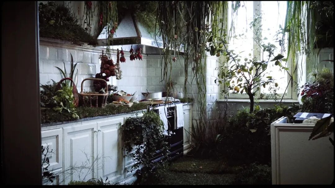 从天花板上垂下的植物凸显着主人对自然的追求。他的厨房亦在Marni 2021秋冬时装线上发布会上露出,被打造成了一个自然乐园。© AD Italia