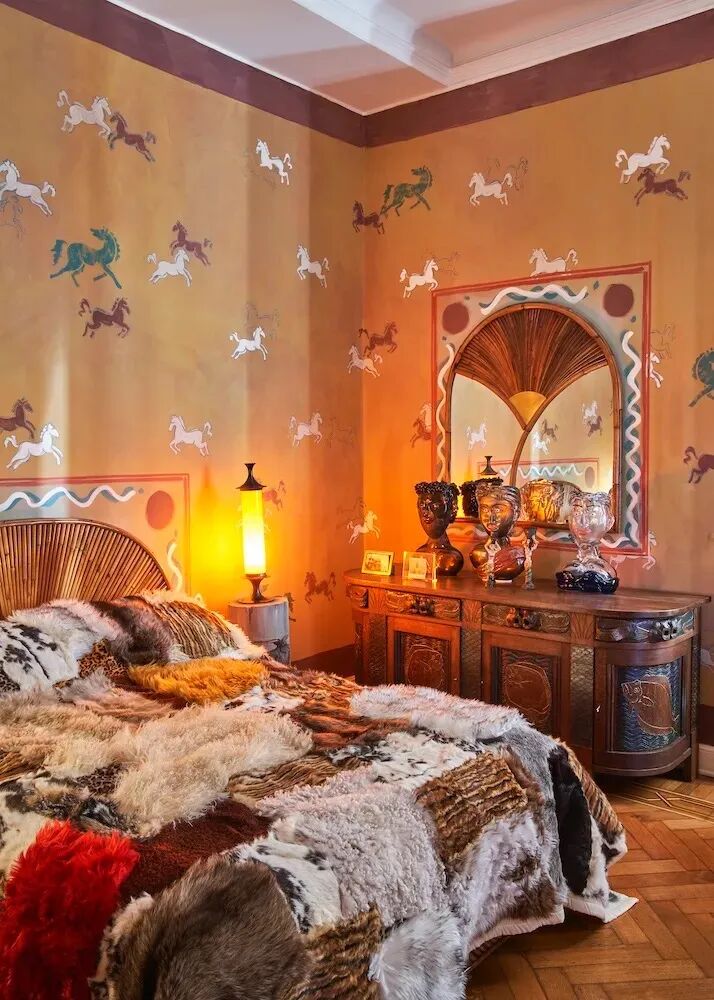 主卧,Risso把自己童真、孩子气的一面装入其中。“马”的图案是这个空间的主题。© AD Italia