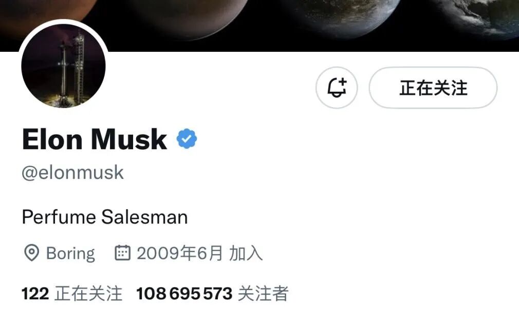 他的推销煞有介事,如果你从不知道马斯克,光看他的推特主页,可能真的会以为他是一个平平无奇的销售员——他连推特的个人简介都改成了“香水推销员”,还说:“拥有马斯克这样的名字,进军香水行业是必然的。”