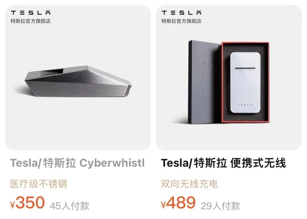 特斯拉的周边产品非常丰富,现在的特斯拉天猫旗舰店中,仍然有16款在售的周边产品,包括哨子、雨伞、充电宝、杯子、汽车模型、儿童玩具车等。