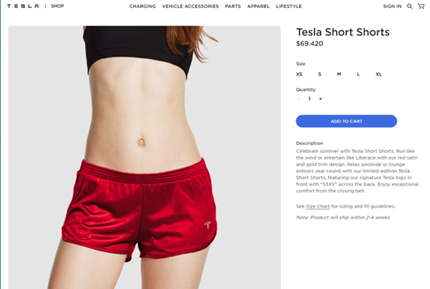 到了2020年,特斯拉推出两款嘲讽满满的产品:一款是7月上线的“做空短裤”,金边红缎面,售价69美元。其英文名short shorts,英语中short一词也有“做空”之意,而副词shorts又恰好有短裤之意,马斯克对谐音梗是真爱啊。