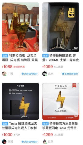 特斯拉龙舌兰推出的次年,2021年双十一预售期间,特斯拉推出了限量玻璃酒瓶,只有瓶子没有酒,售价779元,尽管网友纷纷表示“不理解”,但限量1500个的酒瓶很快就被预订完了。