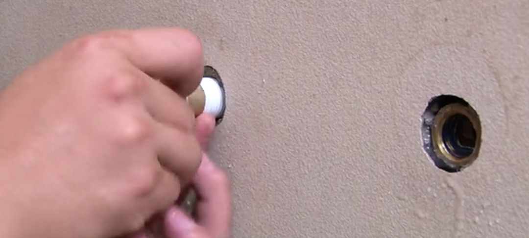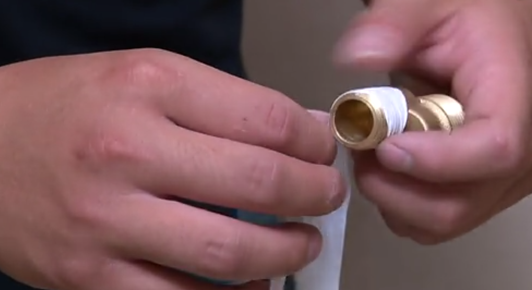 2、将两曲脚接头缠好生料带,生料带不易过厚以防塞不进水源管;