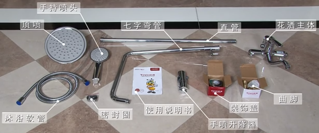 1、在花洒安装前,最好能放一下管道里面的水,冲洗一下管道,并检查所有花洒部件是否齐全;