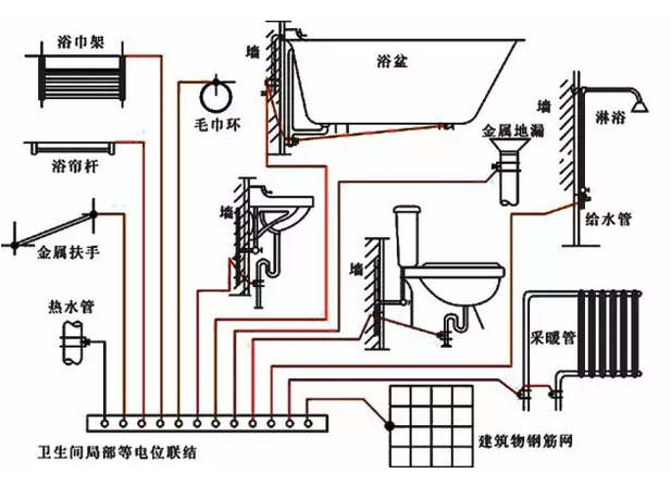 等电位联结这个装置还有一个用途:洗澡用的热水多数是用热水器提供的,也需要用到电,而热水器的功率非常大,若花洒出问题漏水,更容易导致触电,有这个装置就会安全很多。