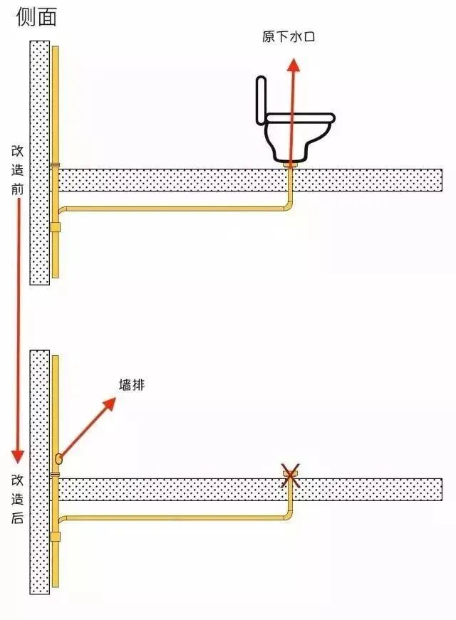 需要和楼下邻居家事先协商好,在改造的过程中需要做好防水和接存水弯,防水是一定的,存水弯是防臭的,这两点很重要。