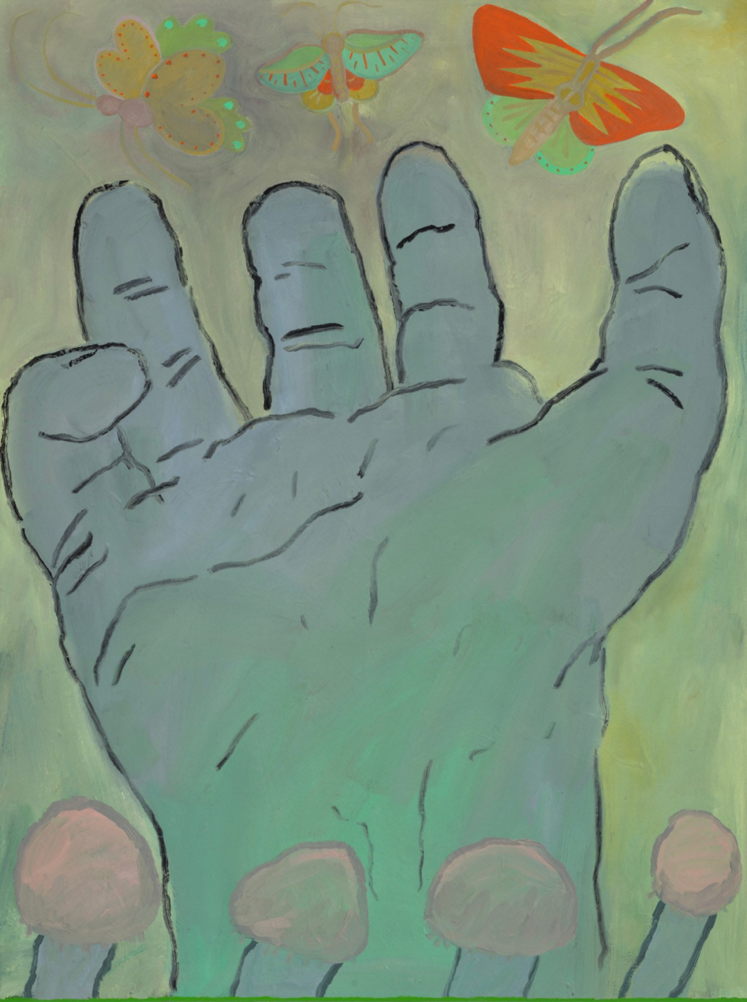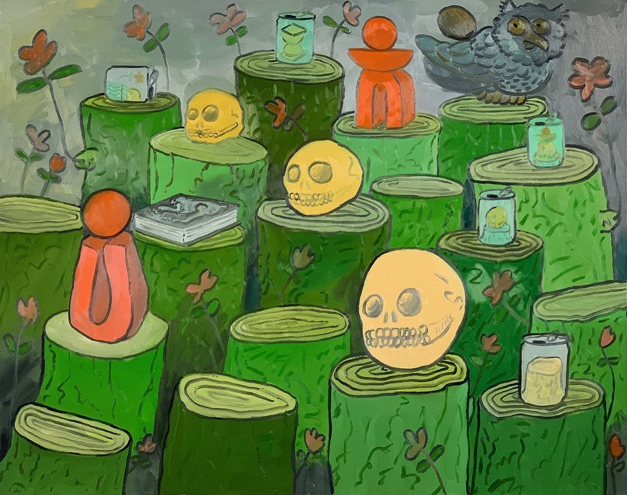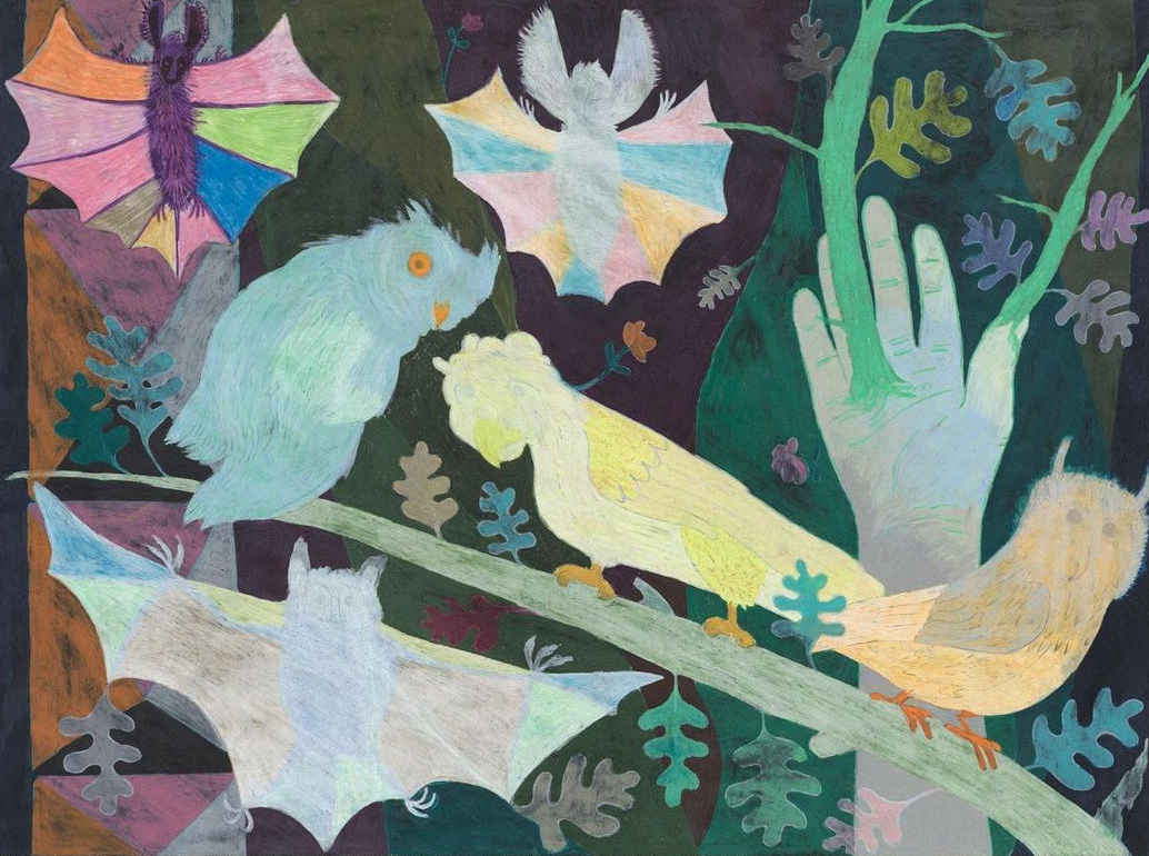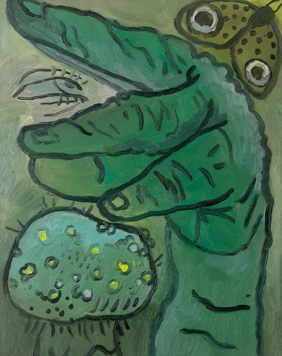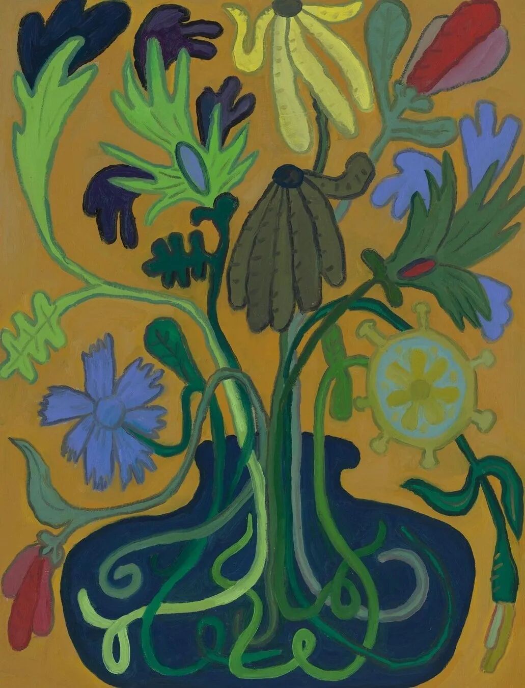 琼斯收集了植物群和动物群、眼睛和手、家居用品以及病毒、石头、蘑菇和草的视觉符号,在画布和纸张上呈现了一个个故事情节。讲故事是琼斯实践的核心,尽管叙事不一定是线性的。在琼斯的作品中,叙事是相关的和动态的,邀请观众思考绘画场景前后的时刻,感受这种持续不断的感觉。