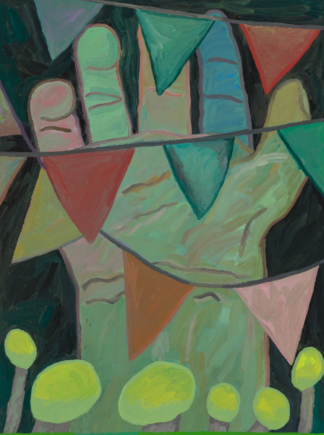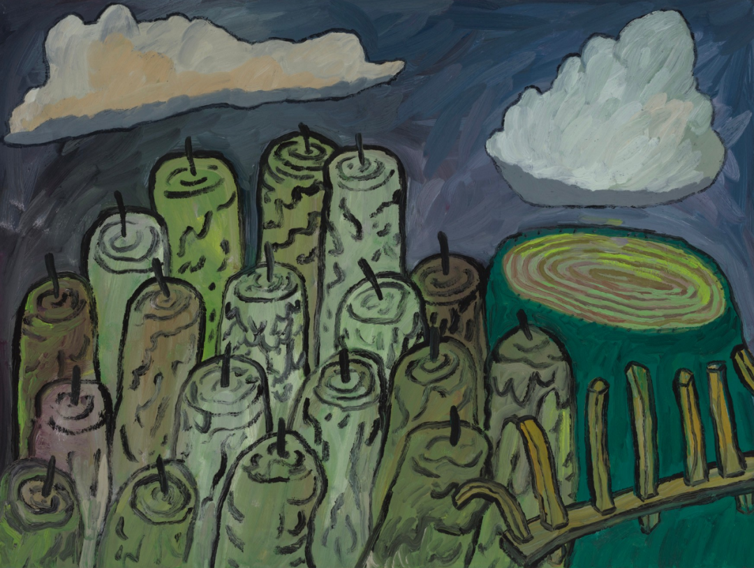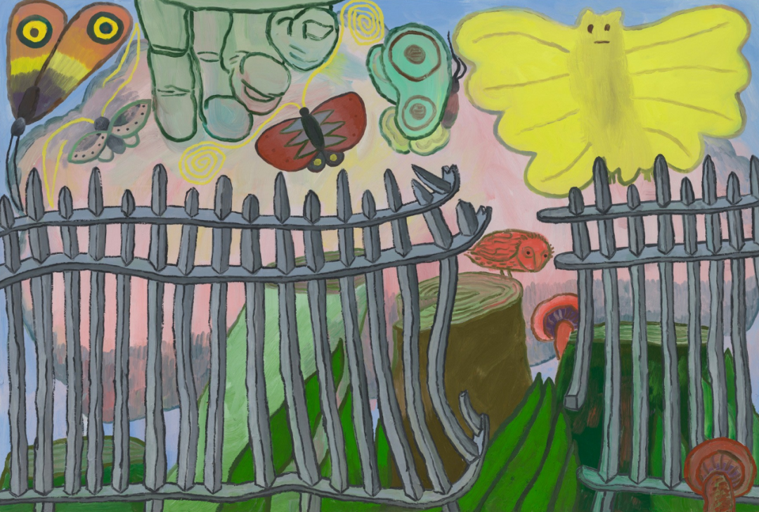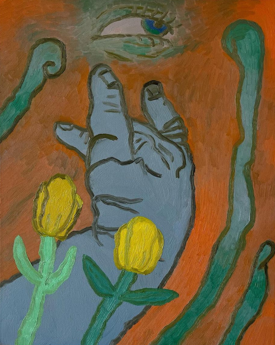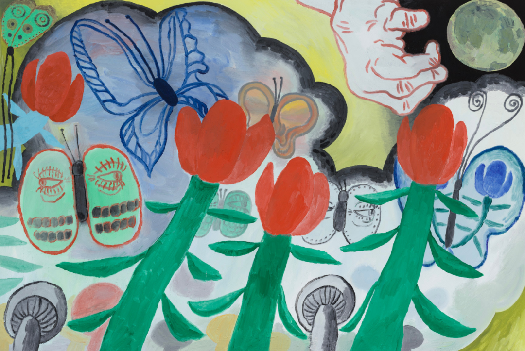 琼斯收集了植物群和动物群、眼睛和手、家居用品以及病毒、石头、蘑菇和草的视觉符号,在画布和纸张上呈现了一个个故事情节。讲故事是琼斯实践的核心,尽管叙事不一定是线性的。在琼斯的作品中,叙事是相关的和动态的,邀请观众思考绘画场景前后的时刻,感受这种持续不断的感觉。