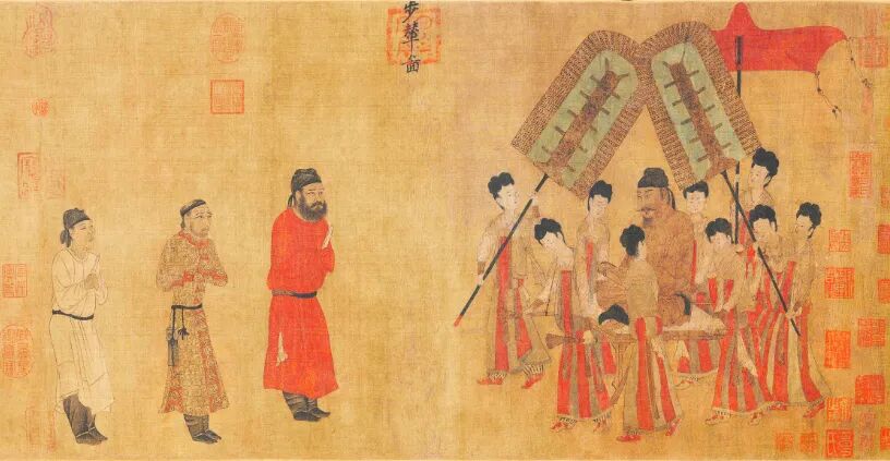 中国历史上名扬天下的人物图无一不在描摹记录人物场景的同时,还肩负了保存历史流变的重责。无论是阎立本《步辇图》中唐吐蕃使臣禄东赞朝见唐太宗,还是《韩熙载夜宴图》中官员设宴行乐,抑或是《簪花仕女图》唐代贵族妇女赏园观花,这些人物图犹如时代照相机般将中古文明永久定格,历史浓缩于笔墨画渍。