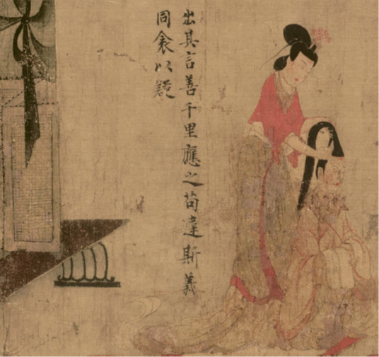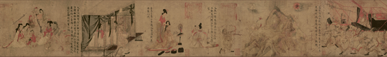 整幅《女史箴图》画卷分为三个部分:与帝王处、借景喻理、宫廷礼节。