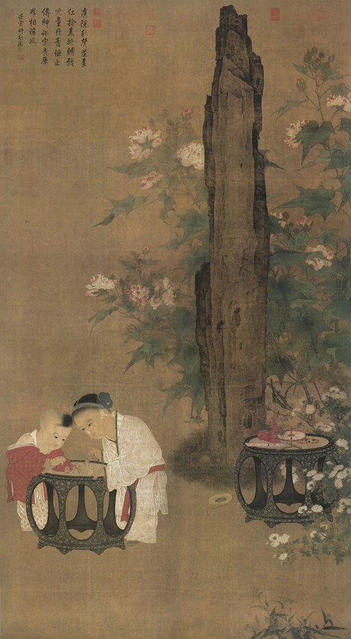 在《秋庭婴戏图》中,我们可以看到古代孩子的游戏季节性十足,往往就地取材,颇有天人合一感。