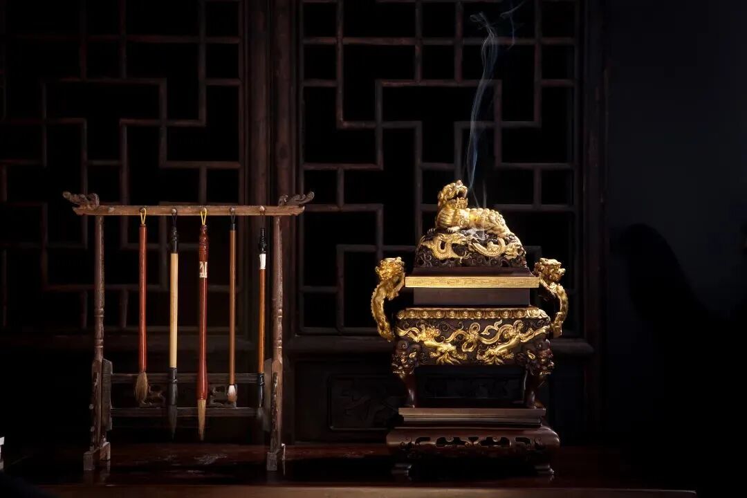 成炉所耗之功,集镂空雕铸,深浅浮雕,描金錾刻于一体,形意相称,寄理于器,古风古意。