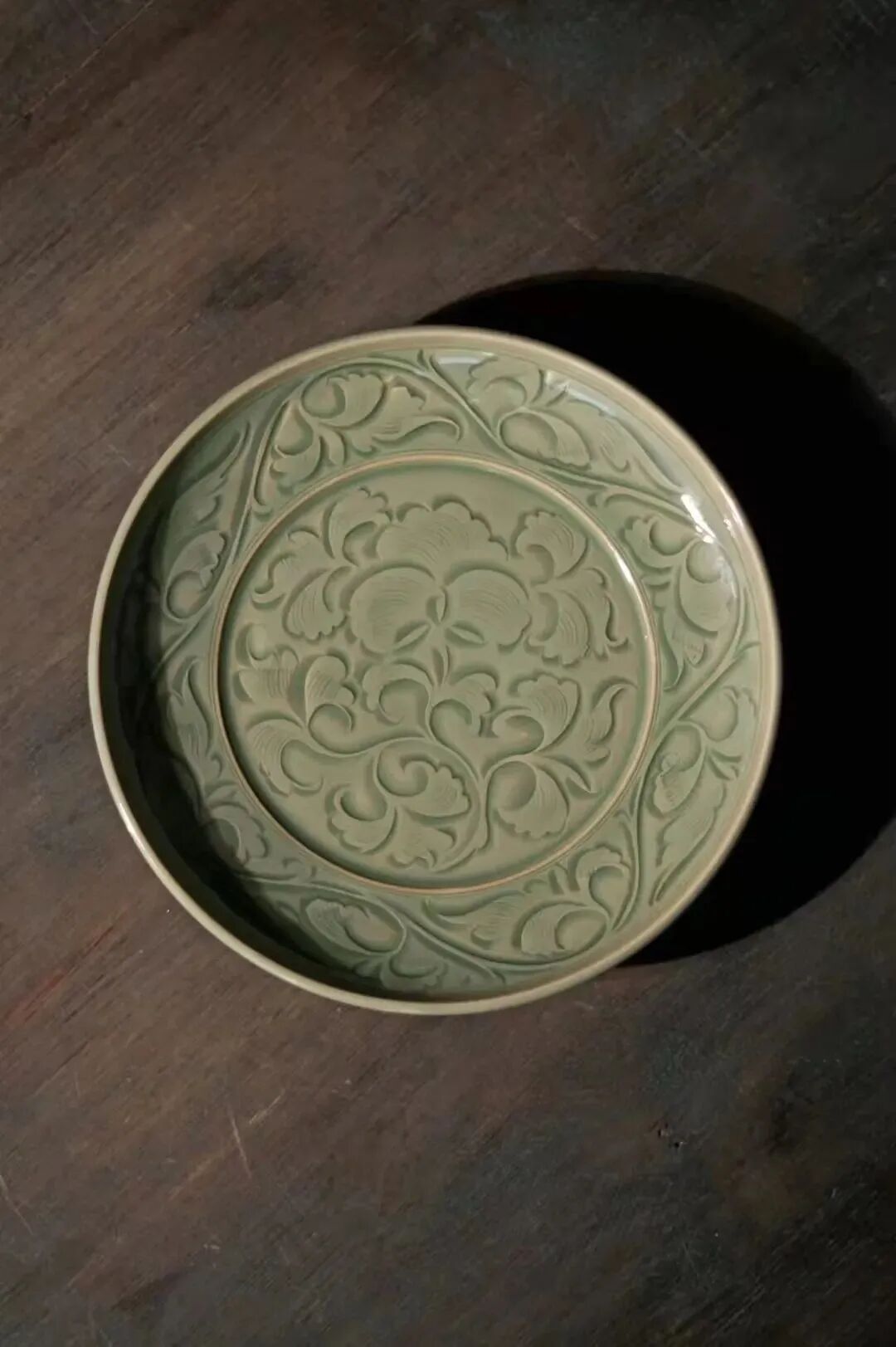 另一个是釉色,耀州瓷的釉色是橄榄绿,跟龙泉的青绿不一样,冷暖色调的区别。