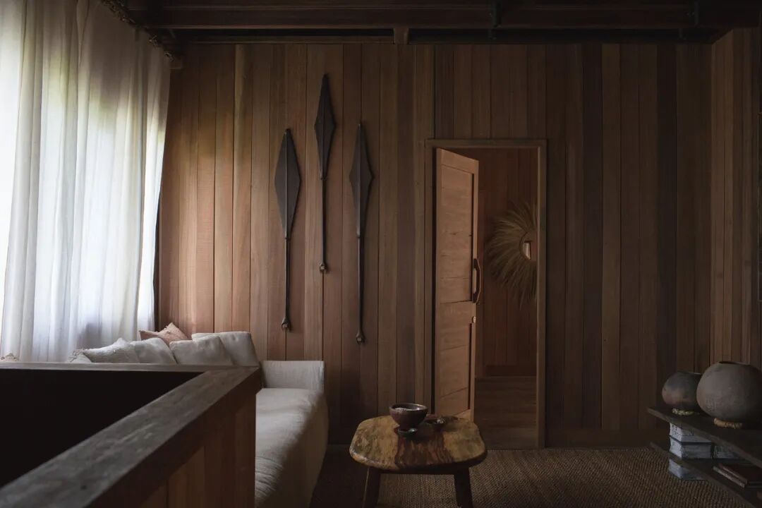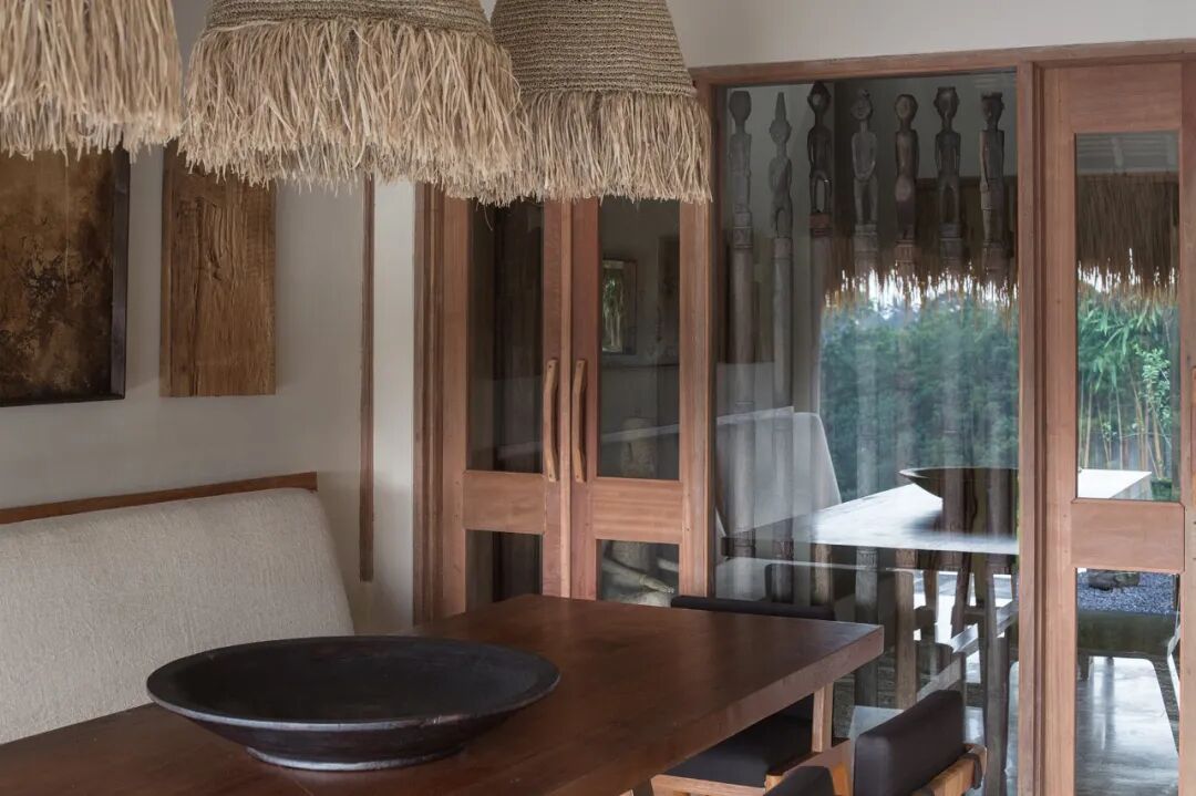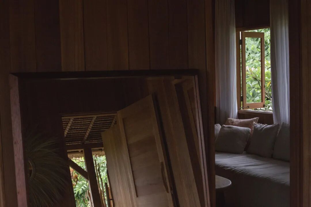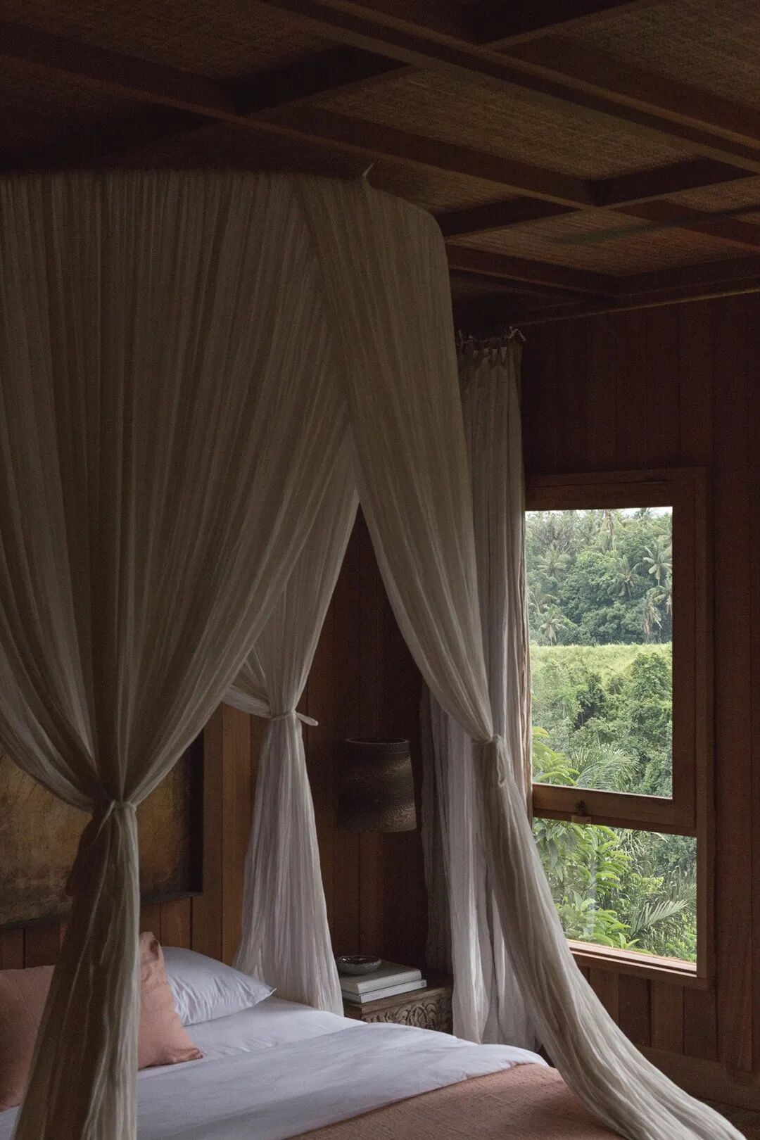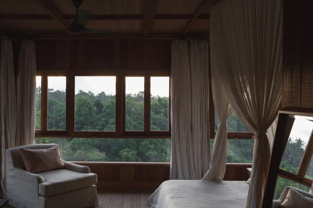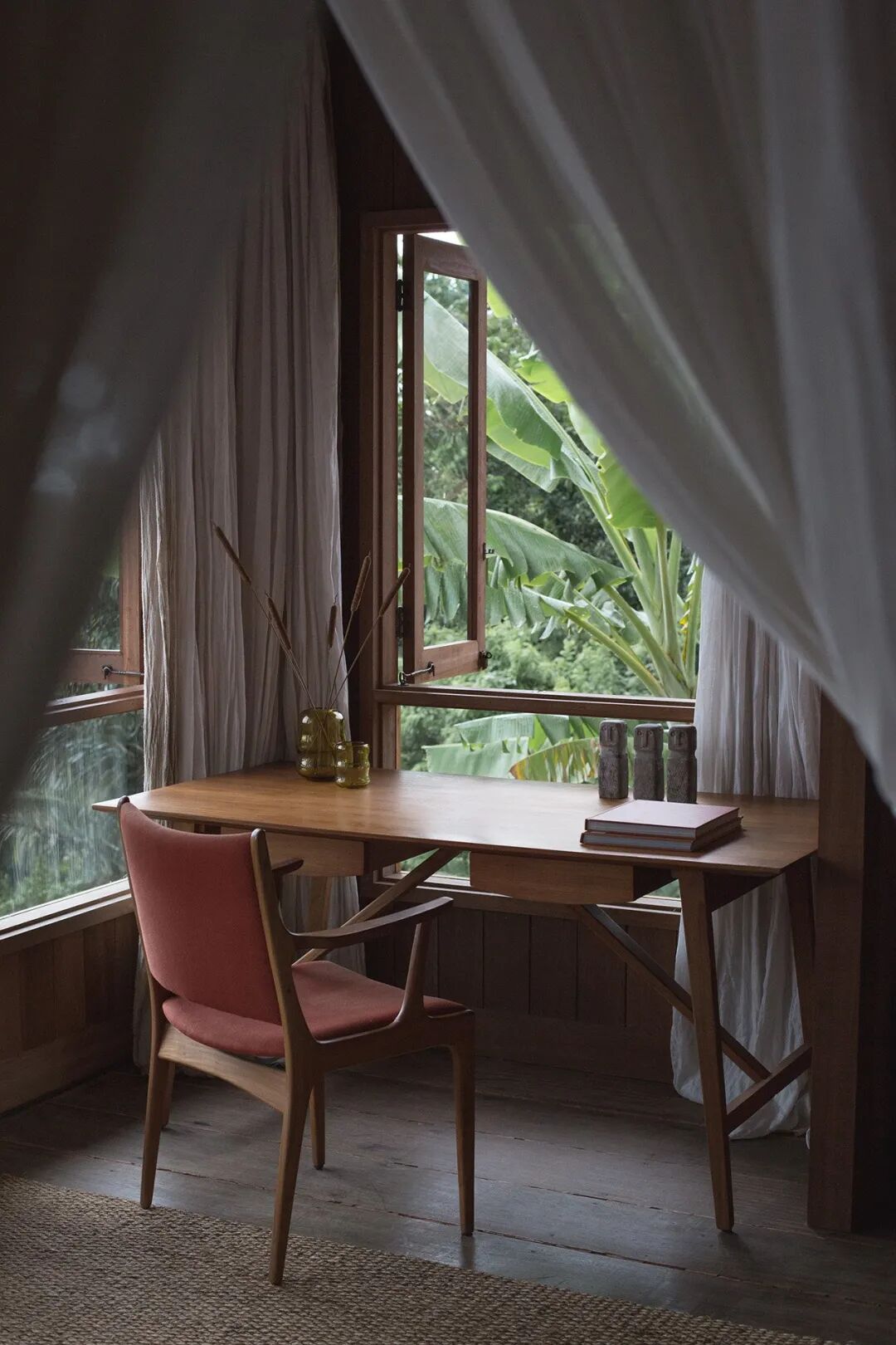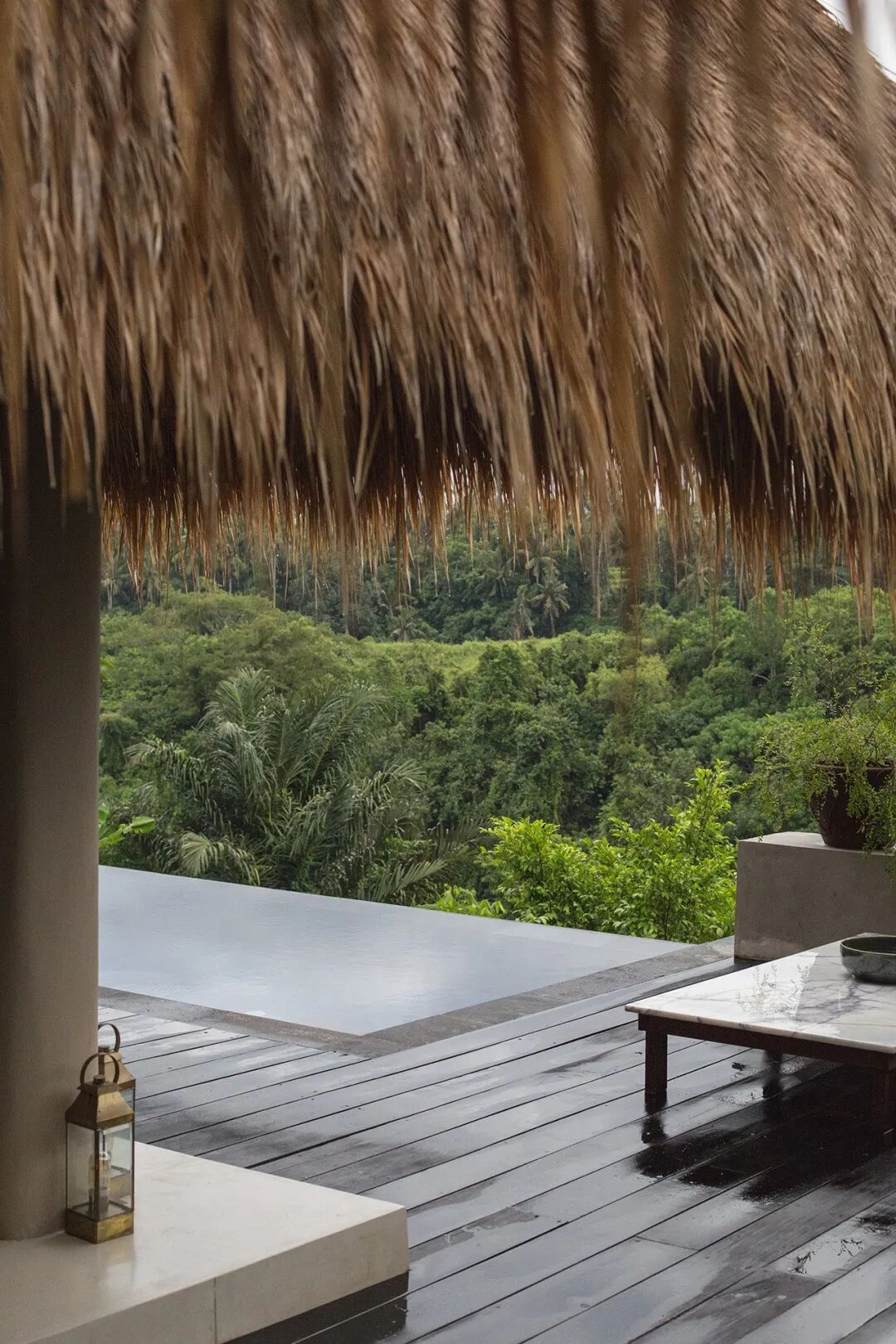 印尼硬木地板、苏门答腊岛柔软的天然地毯和蚊帐床篷为卧室营造出舒缓的氛围,并和谐地与全景窗户的青翠景色相得益彰。但是,也许房子里最好的地方是欣赏周围的自然环境并挖掘该地区的灵魂,其中两间客房中的露天淋浴,提供令人惊叹的360度全景。