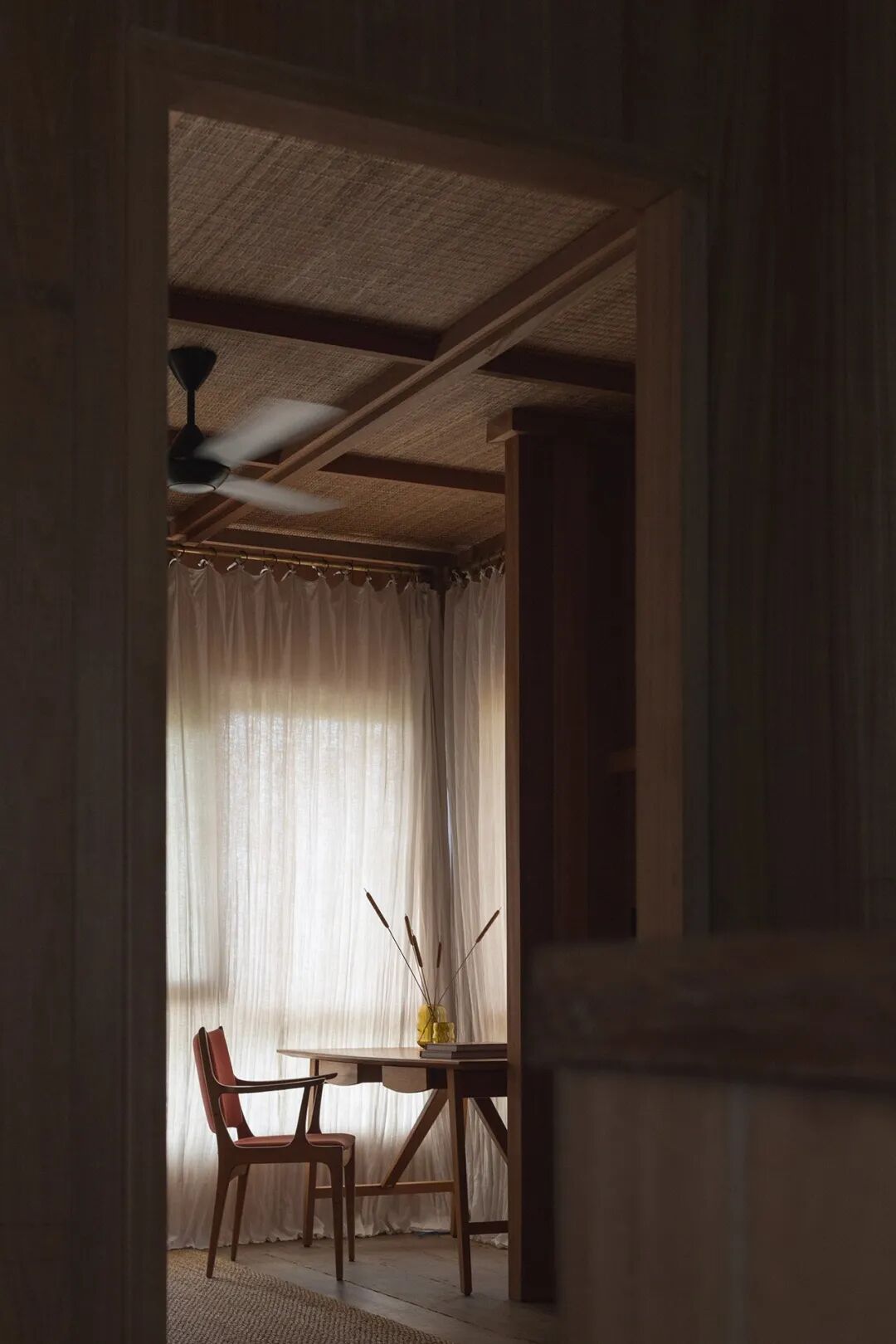 This pagoda like two-story house has been restored for one year, and the sustainable design method with strong adaptability is adopted. By using natural materials, tropical wood and local vegetation are arranged on the thatched roof, which is harmonious with the natural environment. In addition to the mysterious Zen atmosphere, the house also leads to a winding garden path through a traditional Bali gate, leading to a sunken pebble garden with bamboo trees.