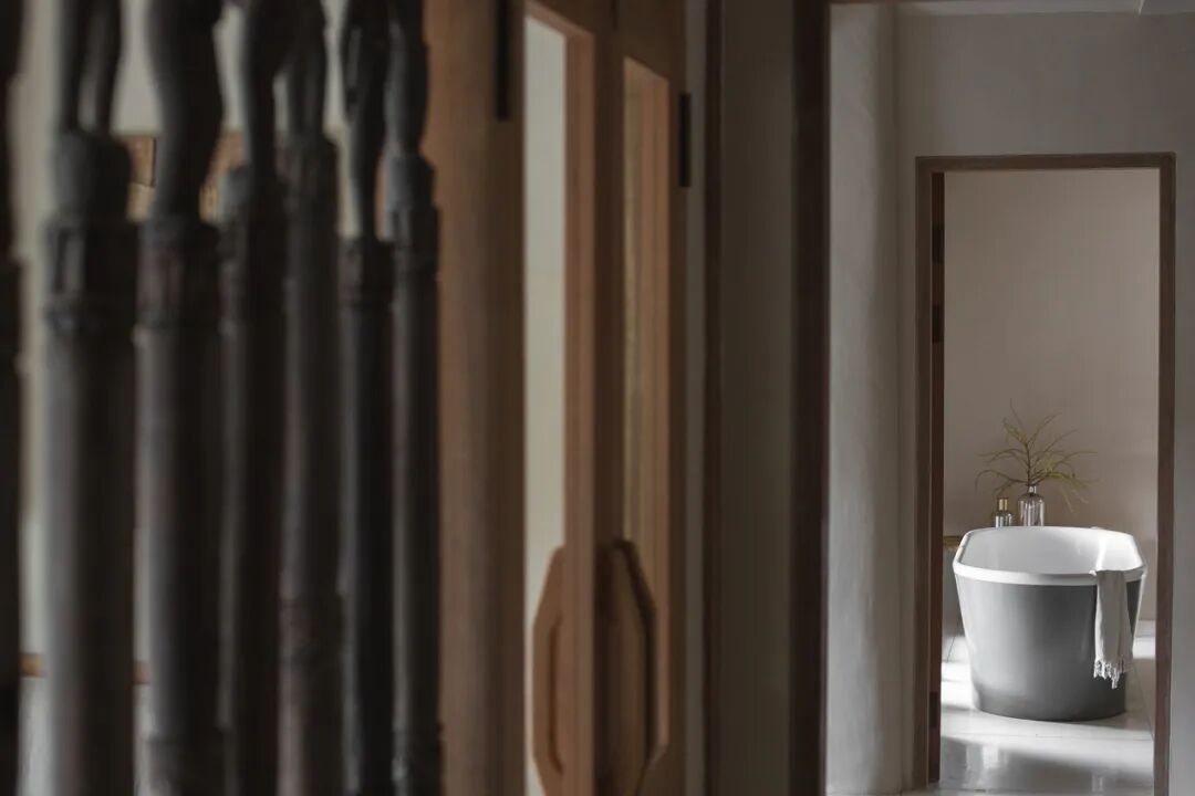 室内继续使用天然材料,柔和的天然硬木,土墙着色,大理石表面和米白色亚麻布为房间注入舒缓,接地气的感觉。辅以一系列手工制作的家具,这是柔和优雅,正宗的工艺和悠闲生活的典范。