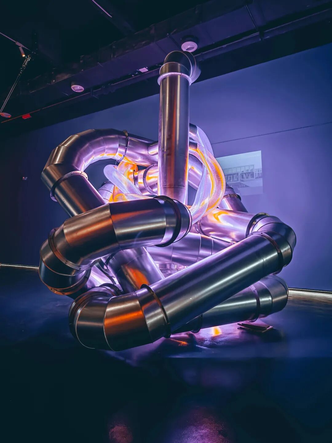 由众建筑的何哲、沈海恩与臧峰创作的“阈限北京”,通过相互连接的管道将不同时空的北京相连起来。(图片:@怪脾气的周一叔叔 小红书)