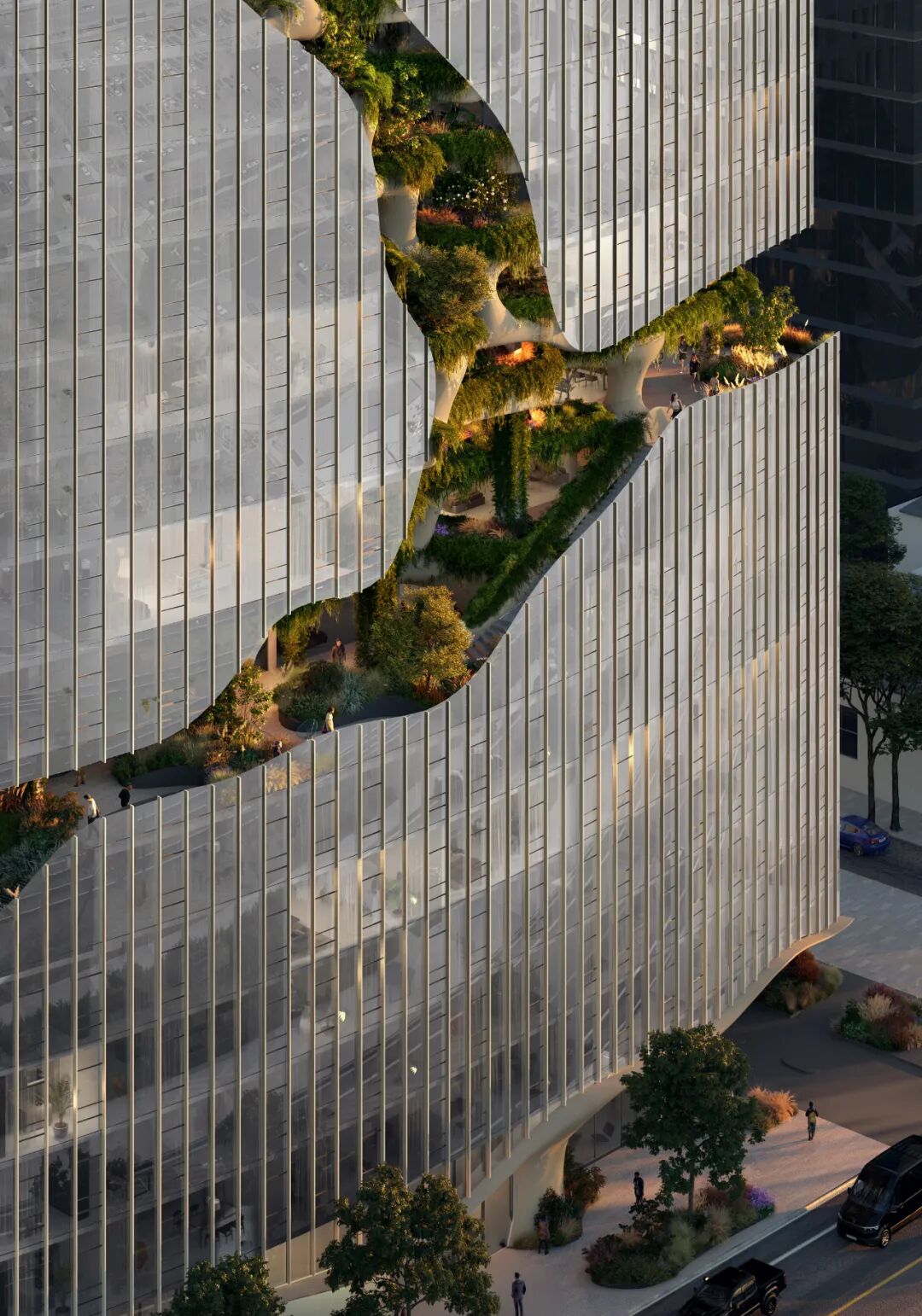 享受着宏伟自然地貌作为城市背景,同时作为RiNo社区全新的高层建筑,“垂直峡谷”将科罗拉多州多元的自然地貌特征——峡谷、高山、森林、溪流瀑布等向城市延伸和渗透,见证了城市创新与城市自然碰撞的化学反应。
