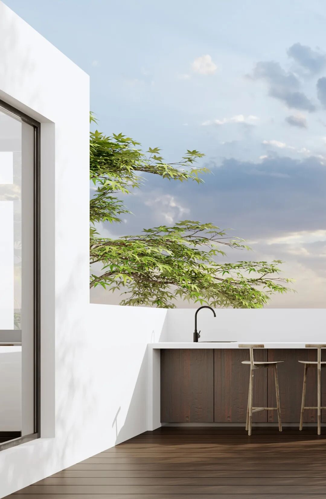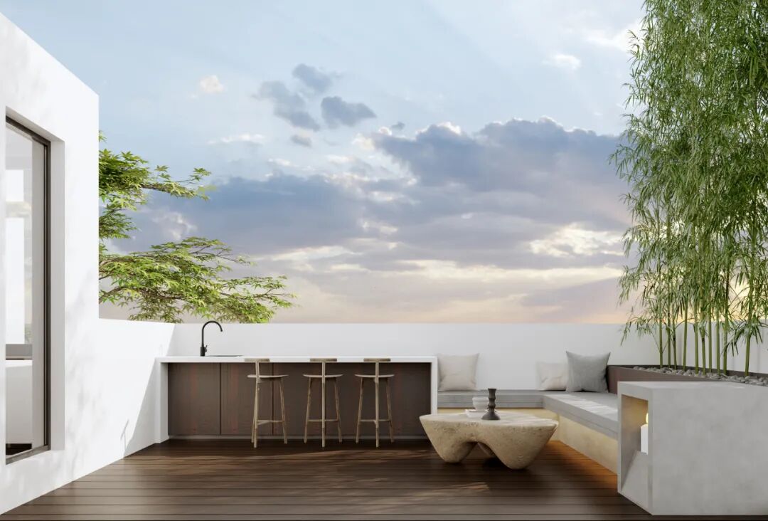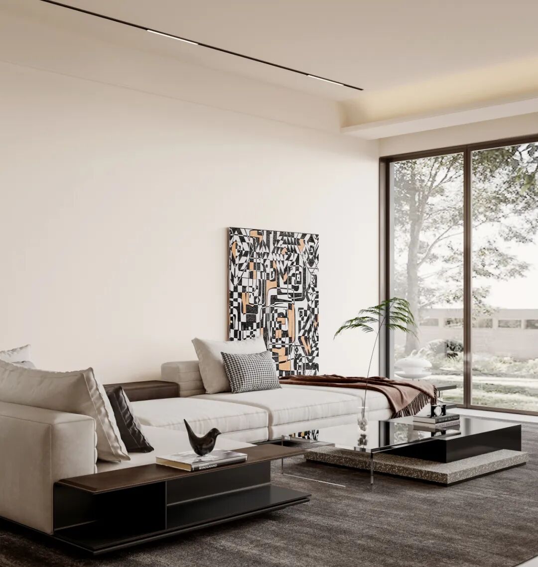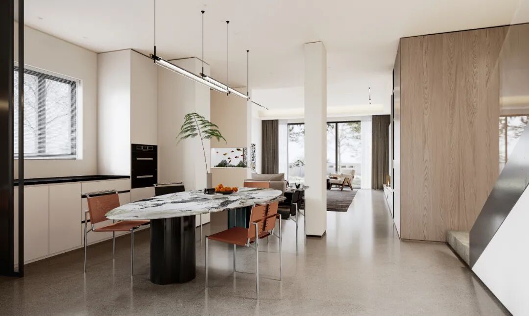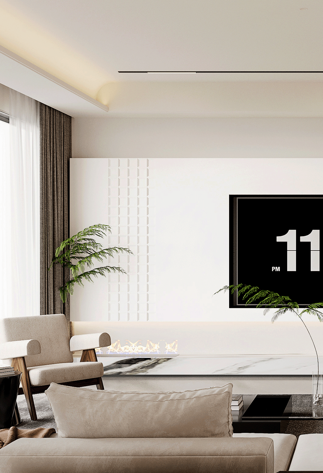 室内空间摒弃了繁多的装饰,搭配着流畅的线条带来一种现代主义的高度理性美。同时,融合了东方的意蕴,空间以现代简约的基调结合了东方的隐逸美学,使住宅在满足简单的生活需求之外,审美和艺术价值也得到了提升。