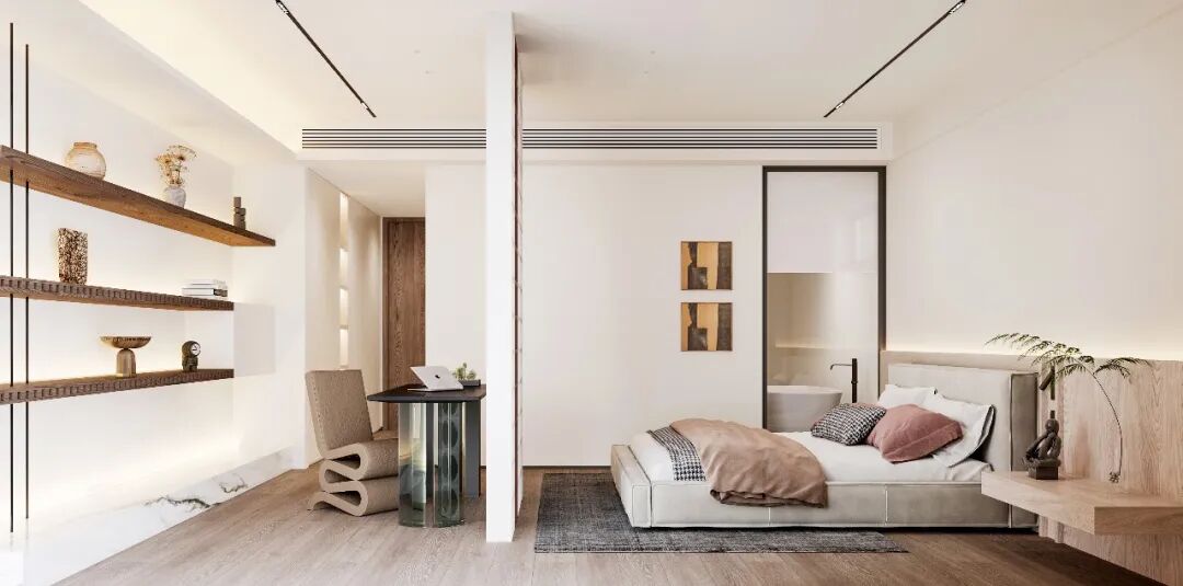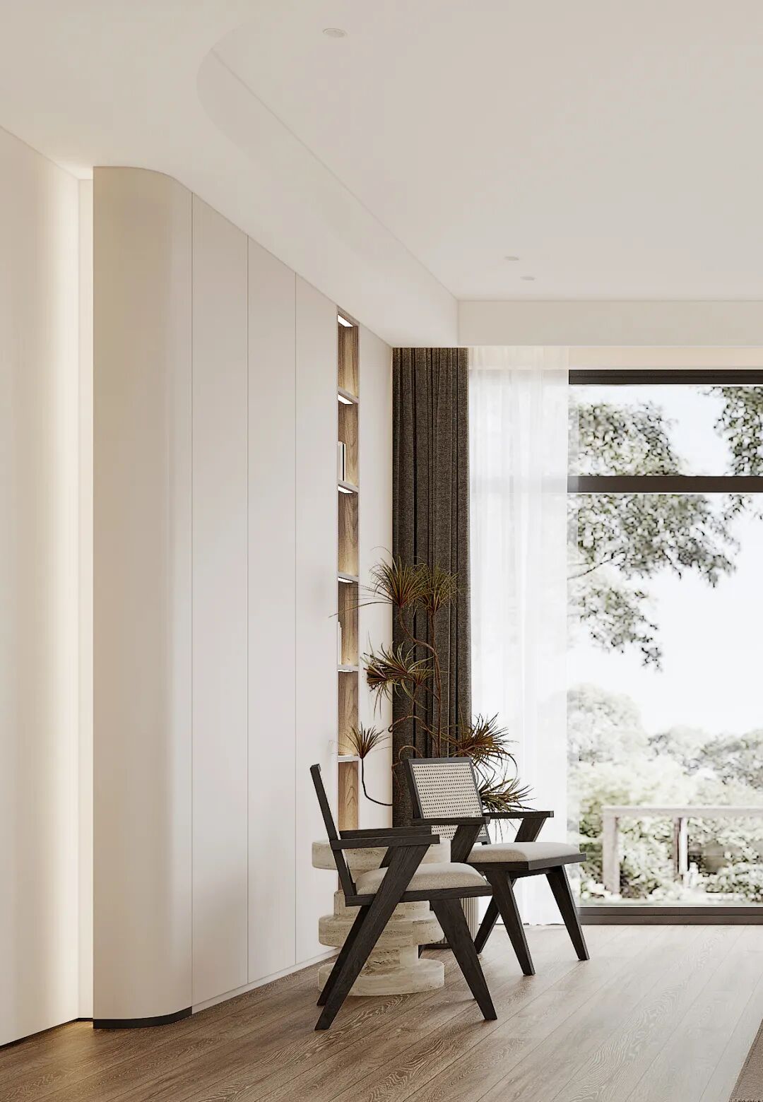 Bedrooms in the home are equipped with large floor-to-ceiling Windows to increase the interaction between interior and exterior, while allowing more natural light into the interior. Bathroom and advocate lie space linkage, enhanced the permeability of the space, active spatial atmosphere.