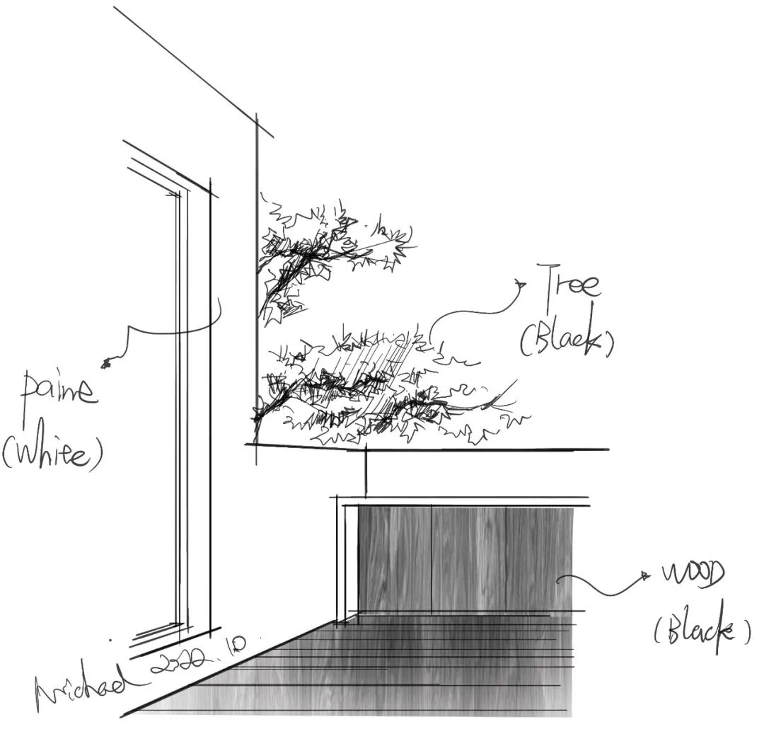 Considering the Angle and distance, the region is divided by the moving projection of the sky light, giving the stage of light flow. The shadow is like a natural sign language, making it possible to communicate between people, time and space.