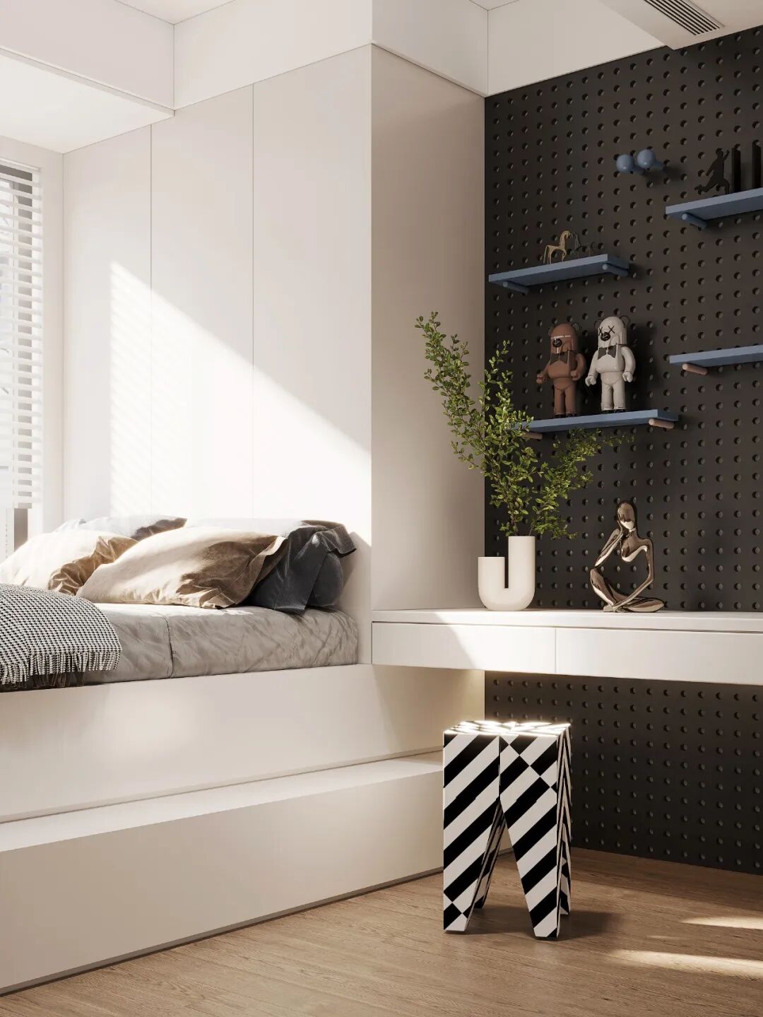 Light and shadow are the soul of space, while the material is the expression of space. When the sun shines on the warm bedding, or strong or weak refraction light, a layer of brilliant brilliance will be sprinkled on the childlike children's space.