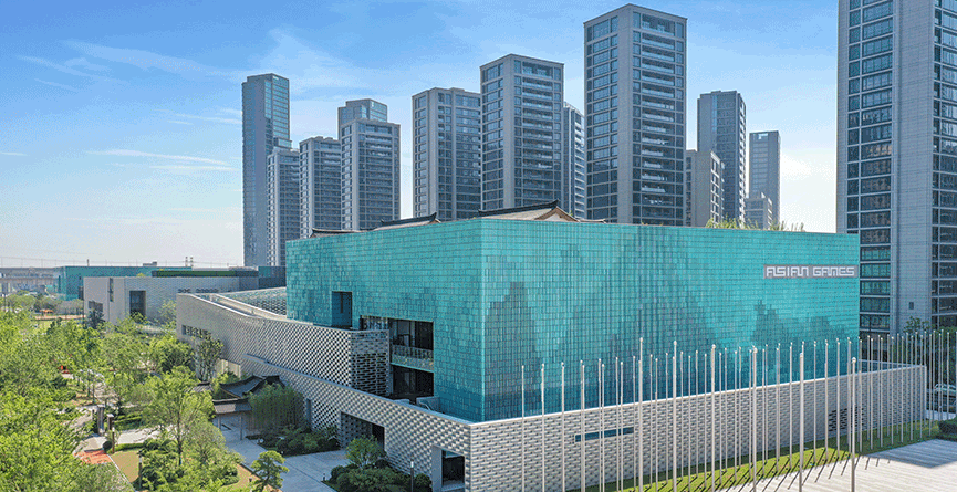 亚运会国际区,在设计最初就肩负着使该区域成为面向世界展示中国文化自信的窗口的文化使命,设计以杭州“一半山水一半城”中“城”的空间格局作为设计的出发点,旨在营造一座具有中国式观游体验的“活力之城”。