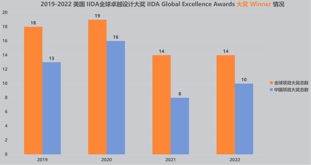 本期全球设计奖项研究所为大家整理了2022 美国 IIDA全球卓越设计大奖 IIDA Global Excellence Awards 获奖名单。据统计,本届共有14个项目获得大奖,其中中国项目10个,占比71%,相比去年(中国项目占比57%),中国项目获奖占比显著上升!