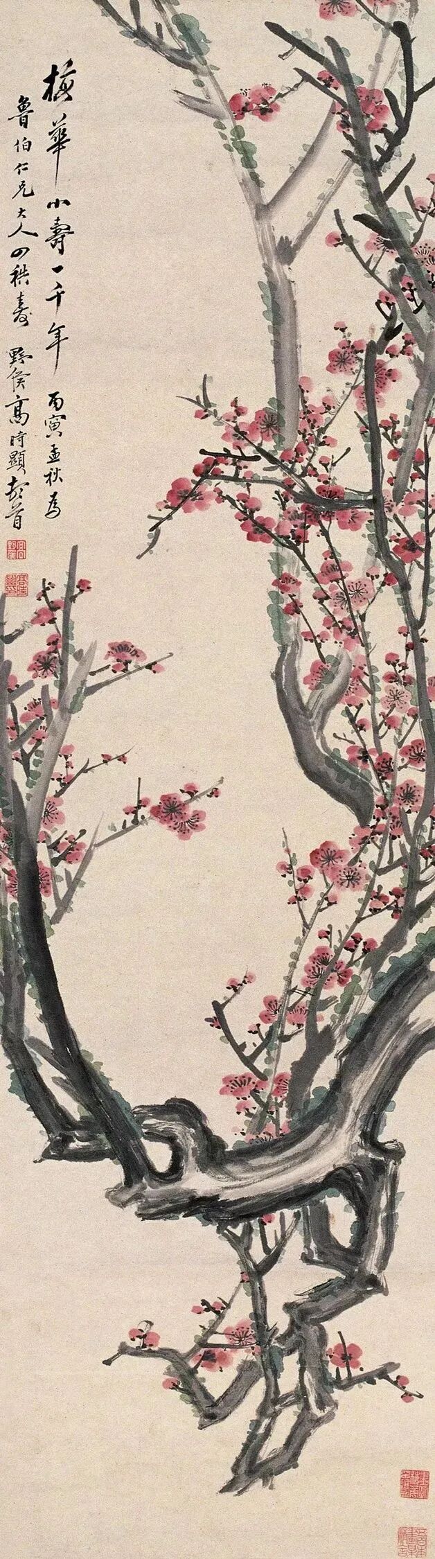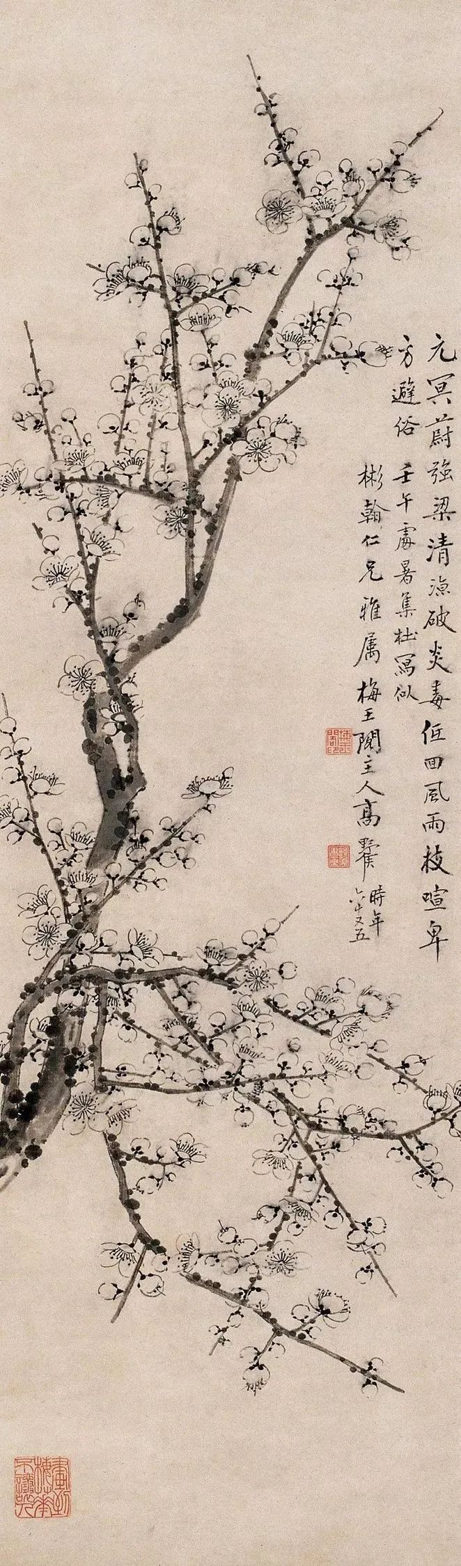 野侯一生与梅花有缘。在他的收藏中,独爱古今名家的梅花图,收藏名家所绘梅花图约计500余幅,自鸣得意,称书屋为“五百本画梅精舍”,于中独爱元代画梅名家王冕的一幅墨梅图,名其书屋曰“梅王阁”,自号“梅王阁主”,得意之情,溢于言表!高野侯以“梅王阁”命名居室,效仿先贤,寄寓了深沉的情感与美好的愿景。