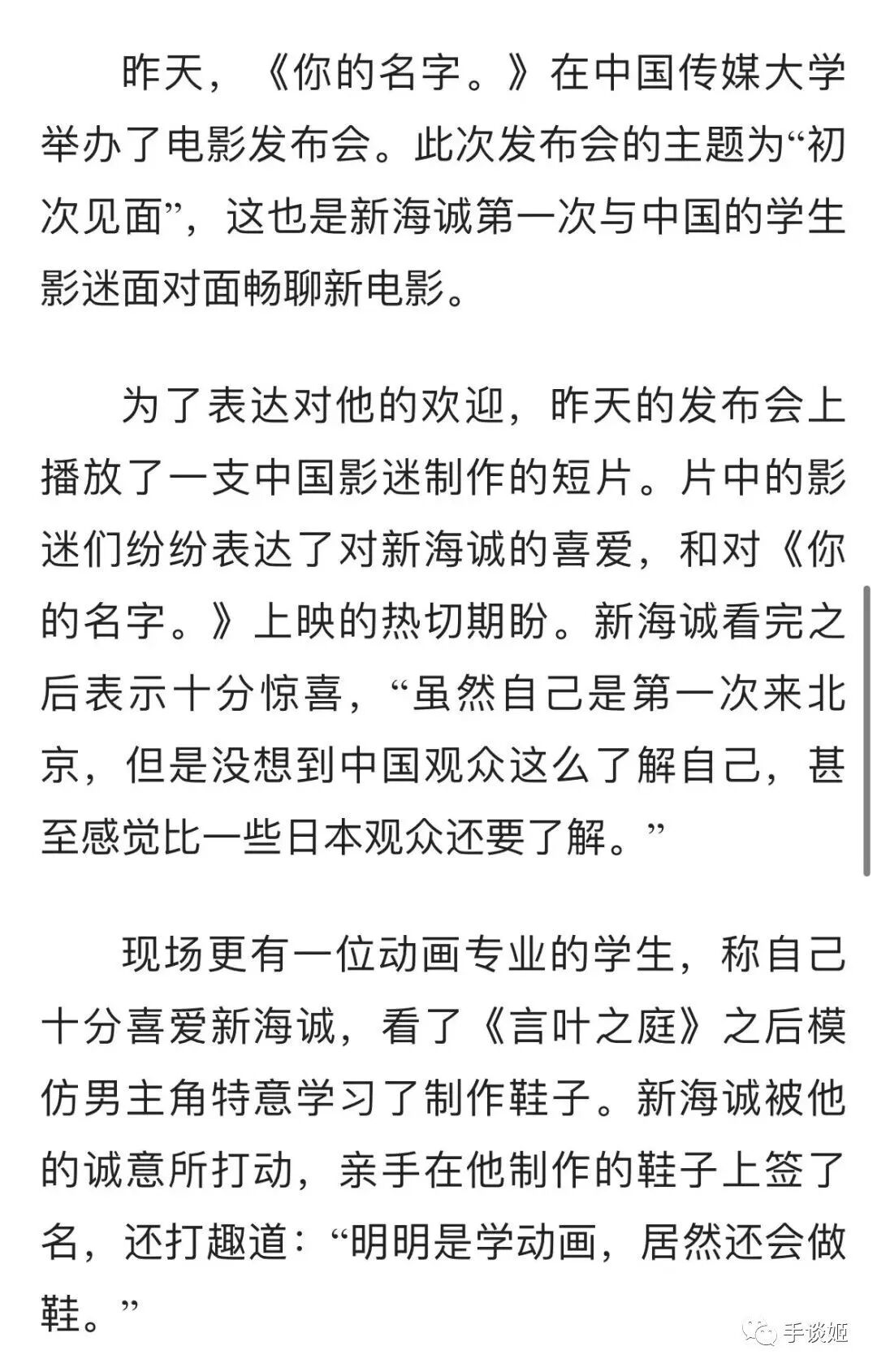 在此前,《你的名字》和《天气之子》的两场电影上映时,他也来过国内进行过宣传。不过那两次去的都是北京的中国传媒大学,这次为什么去北大了呢?姬不得而知,知晓内情的姬友欢迎留言一下。