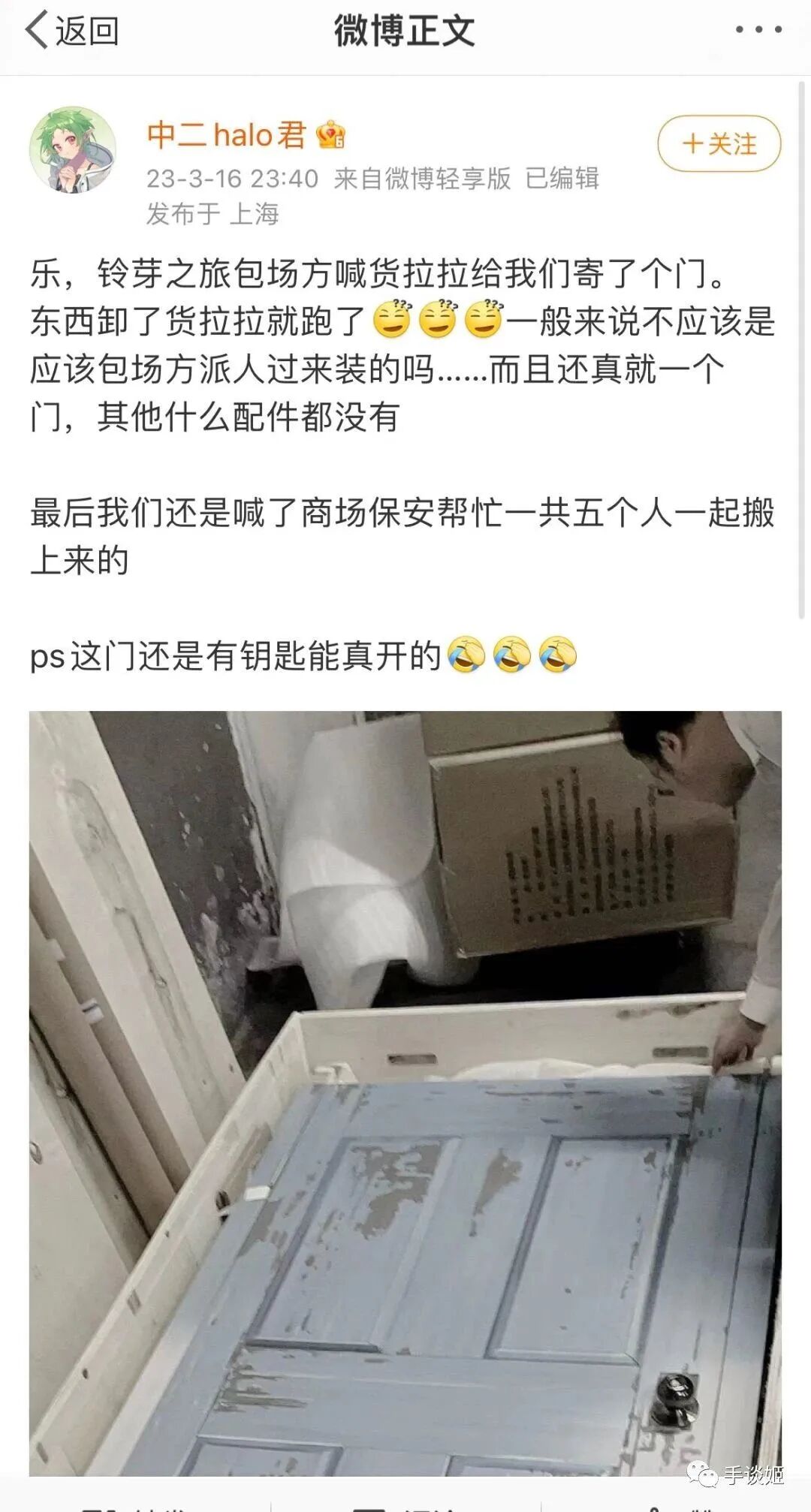 此外还有微博网友表示,有包场方拉来了一个门,但看样子微博这个门是上海的,所以上海、北京两地的影迷在看电影时都能看到一些门了。