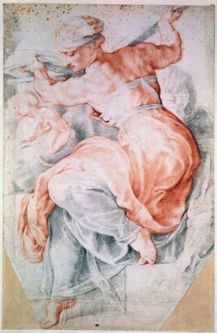 图2 鲁本斯临摹米开朗基罗的《利比亚女先知》