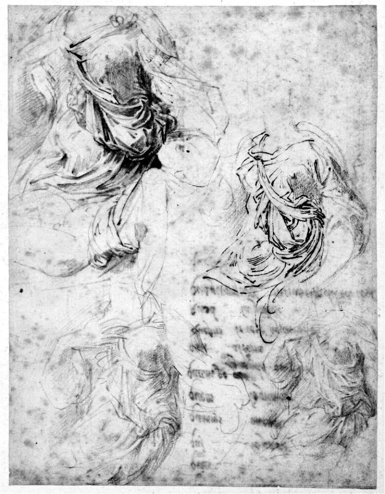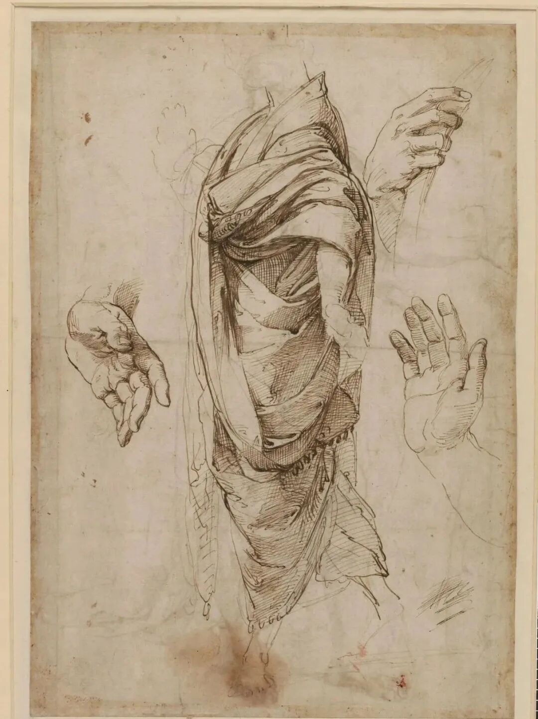 图8 拉斐尔的素描手稿,通过不同手法,材料对衣褶进行的研究,可以看出是一种真正的研究态度