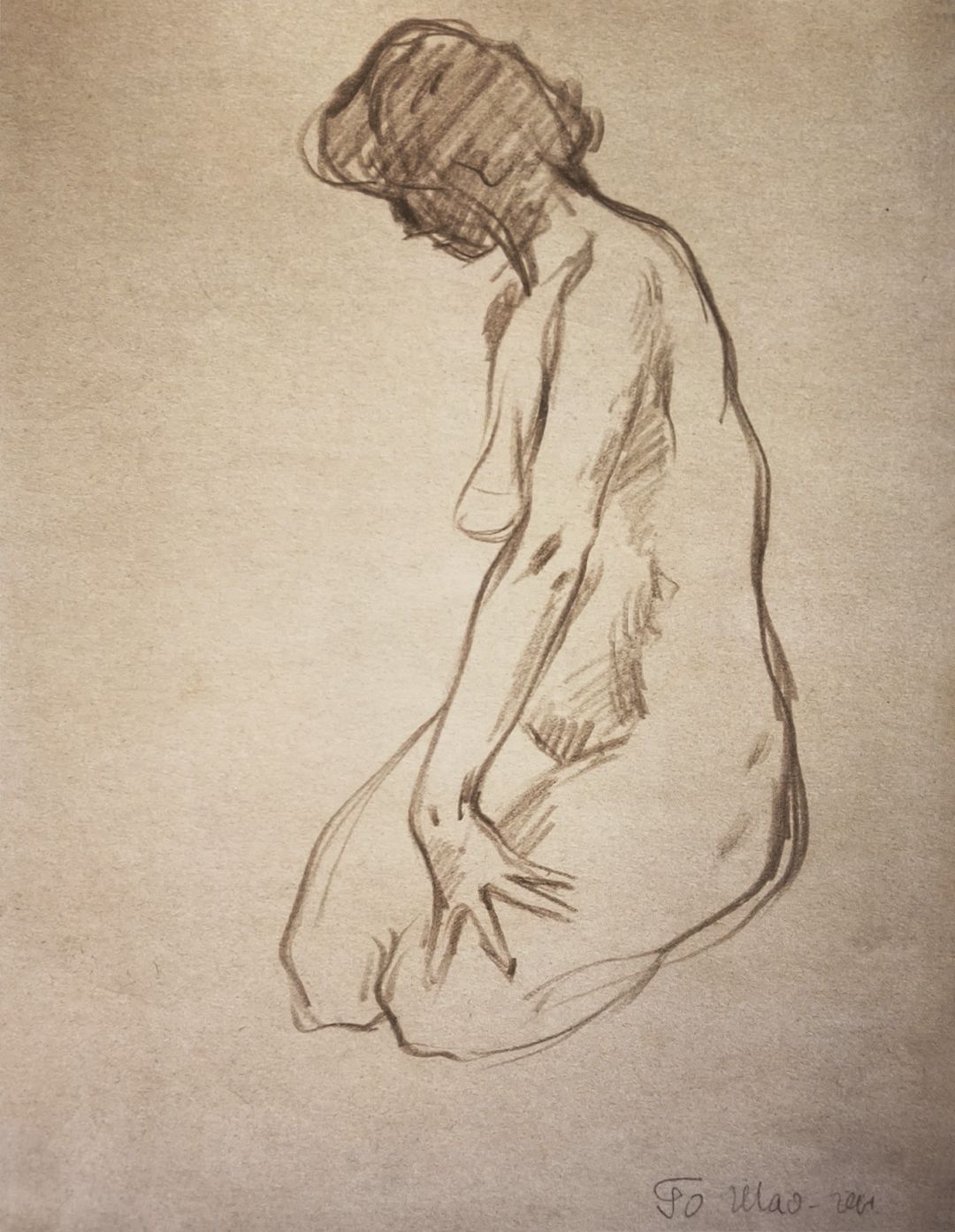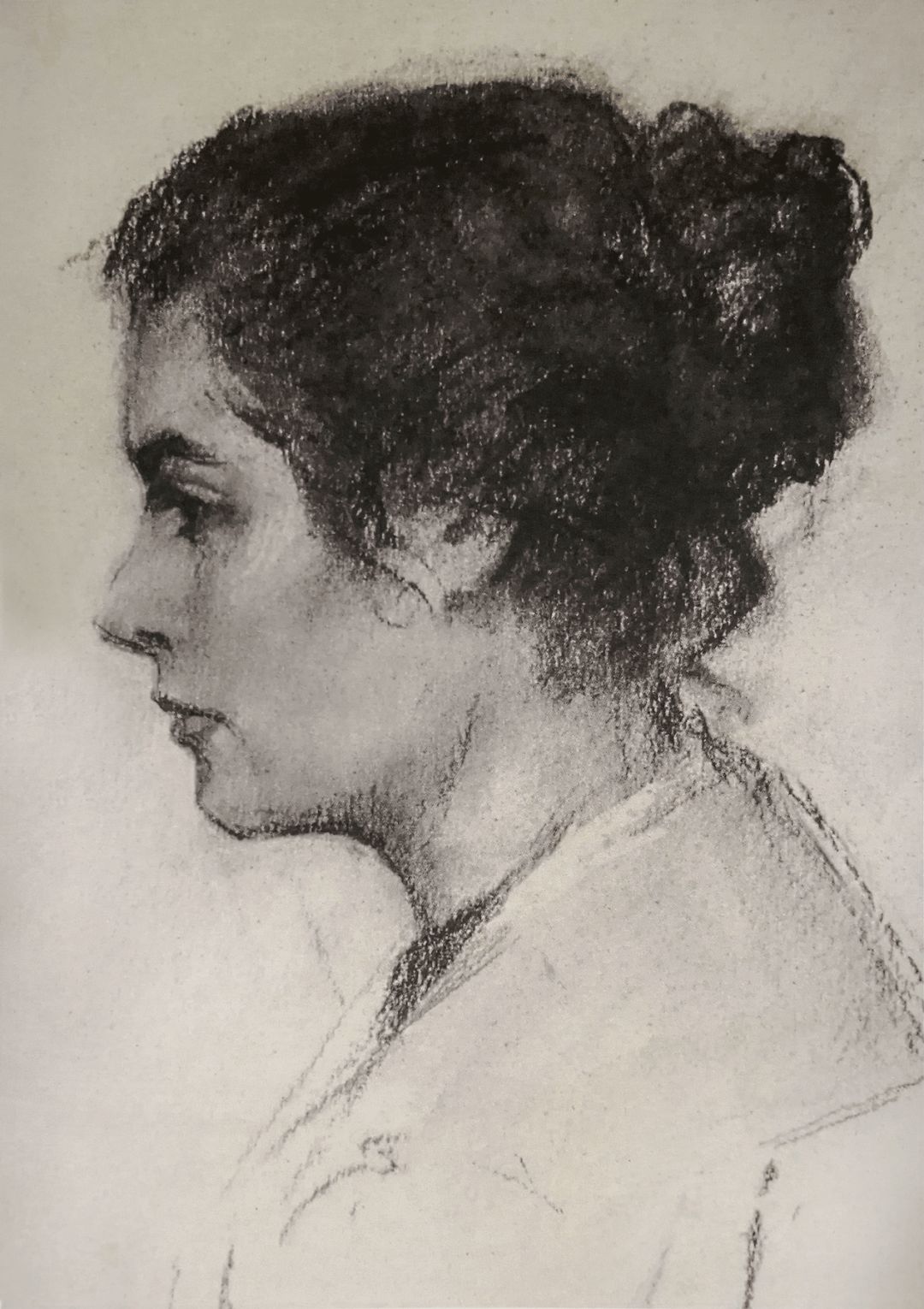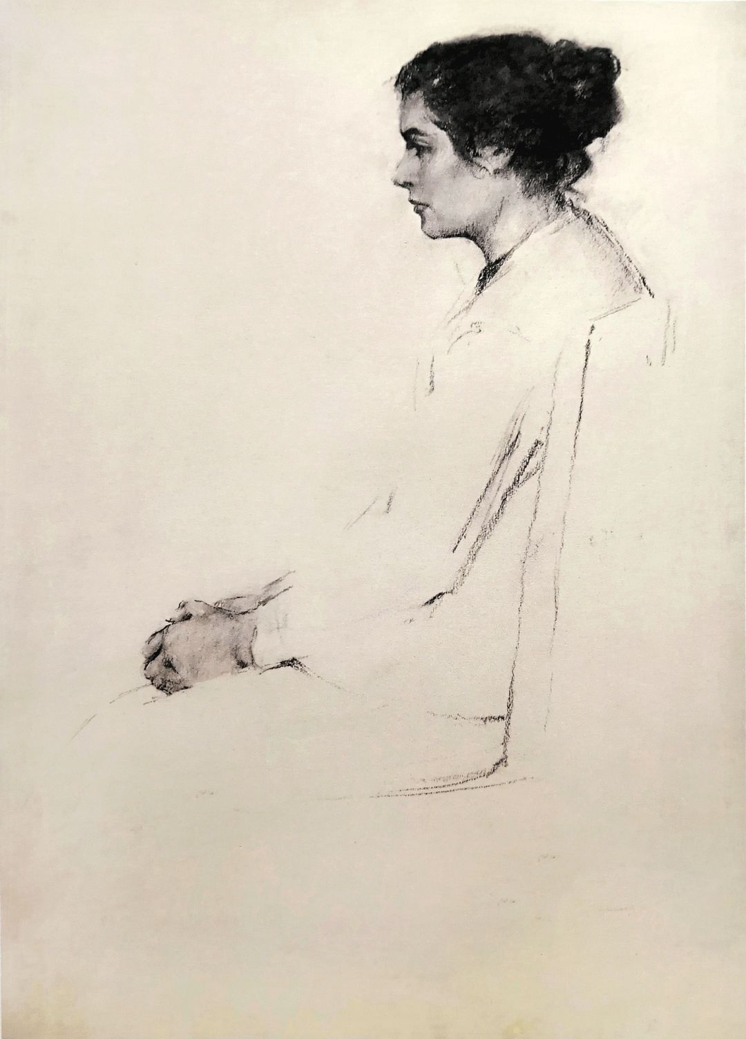《侧面坐着的女人》木炭画
