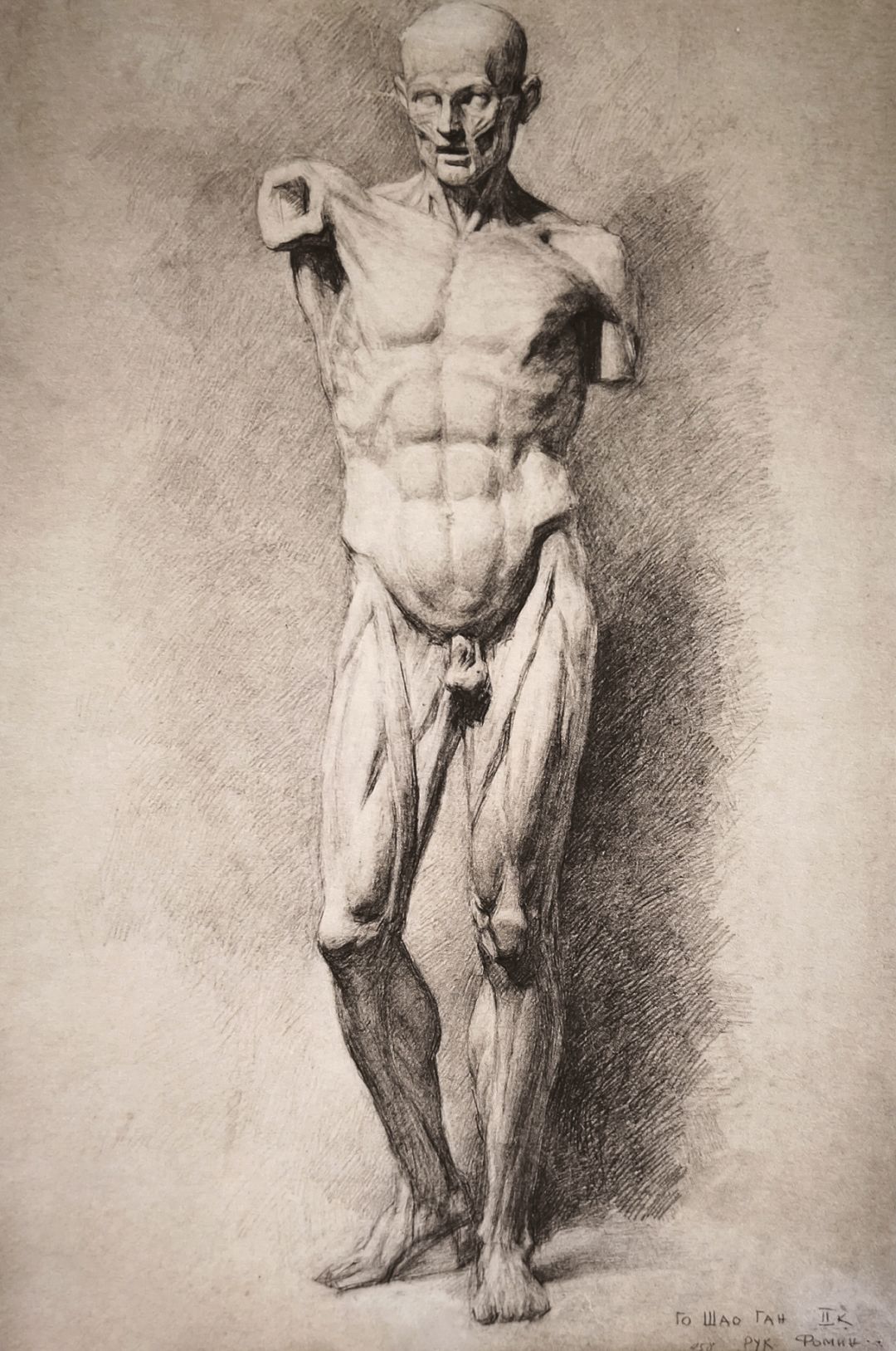 《石膏解剖全身男像》铅笔画