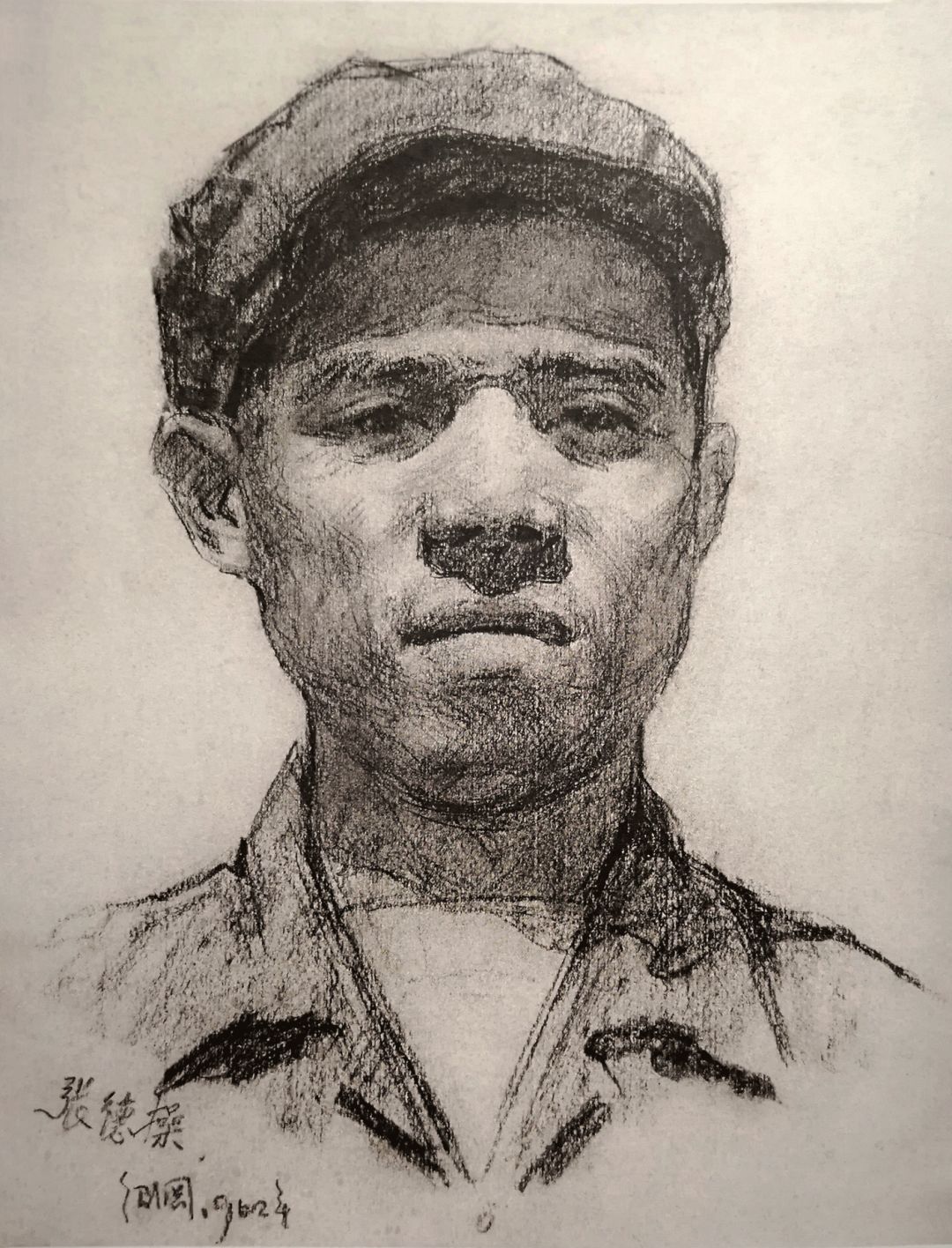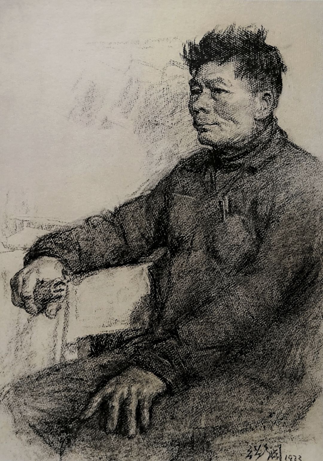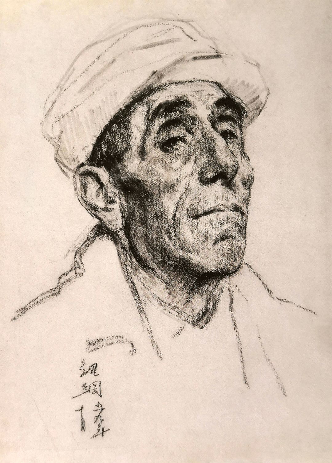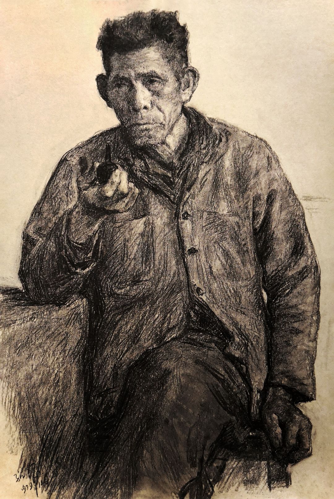 《广州郊区老农》木炭画