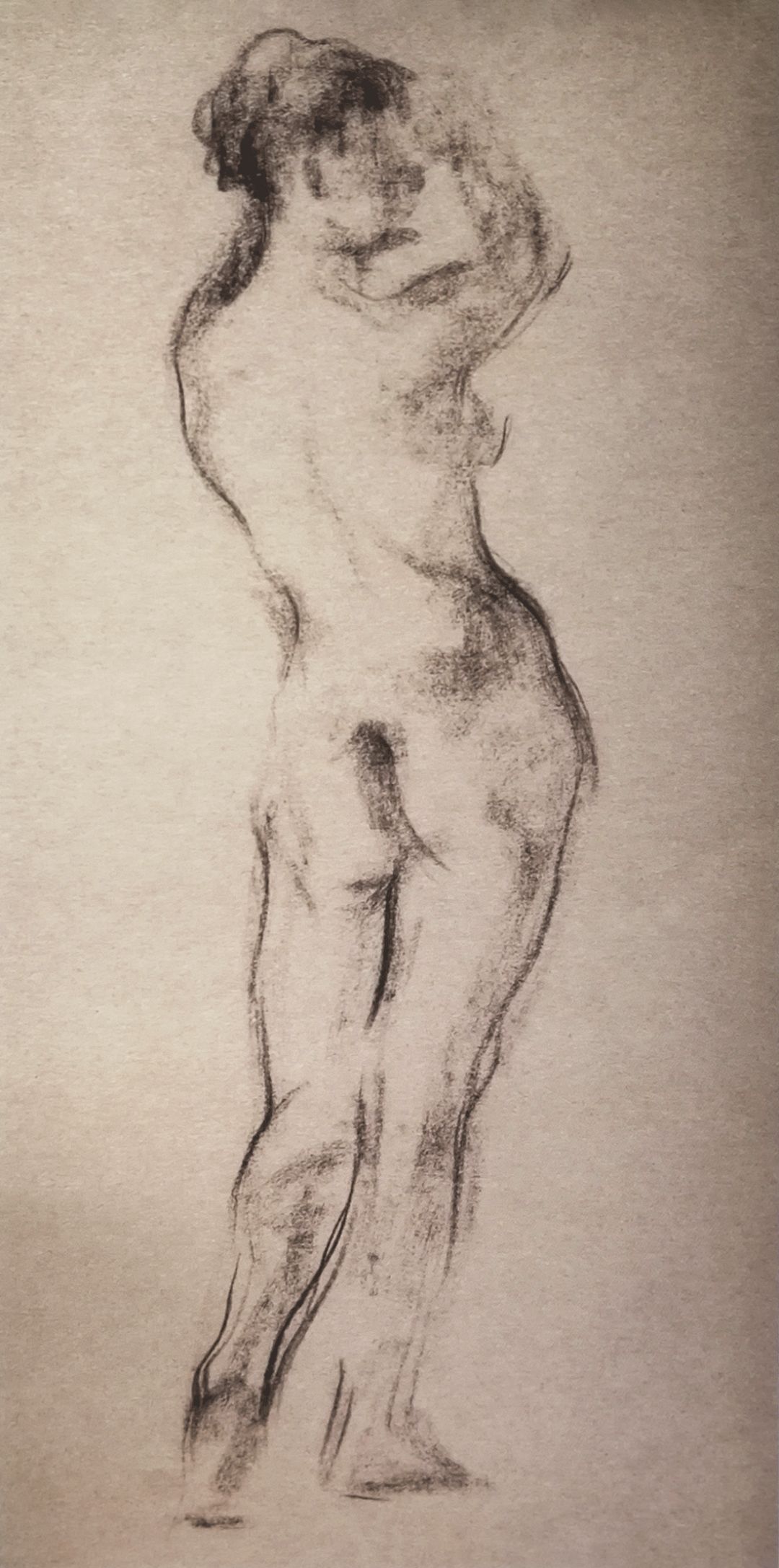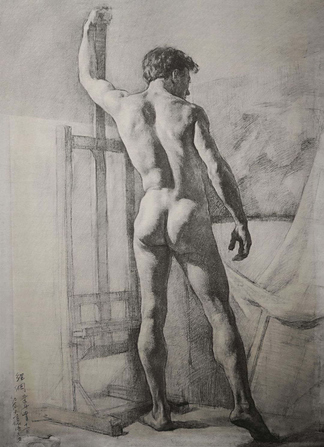 《左手攀画架面站着的男裸体》铅笔画