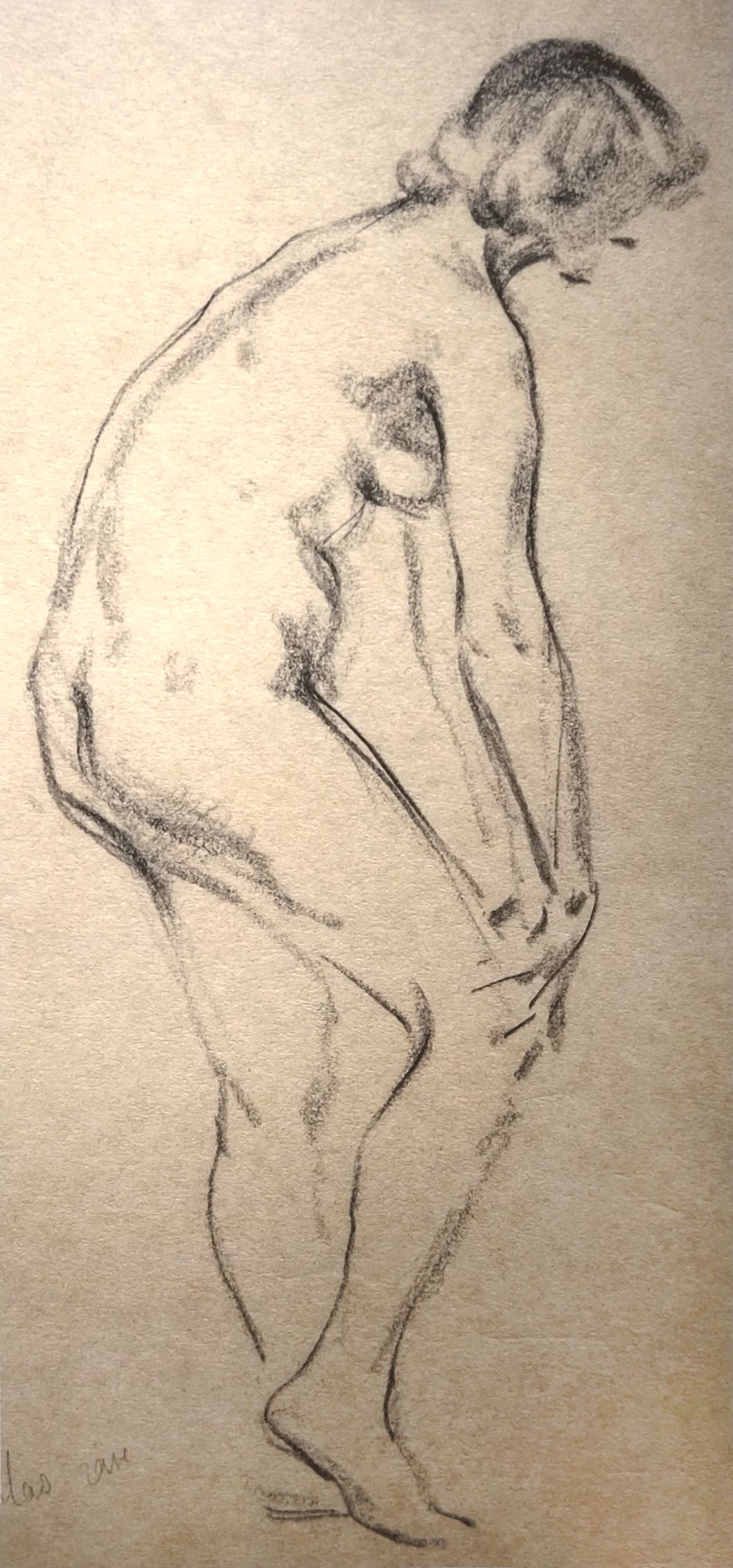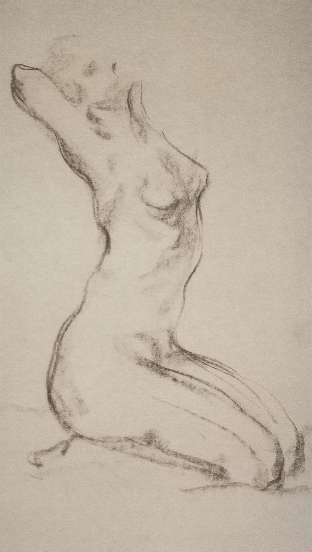 《女人体跪势》垩笔画