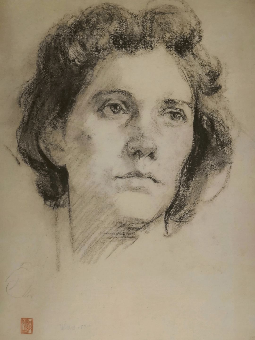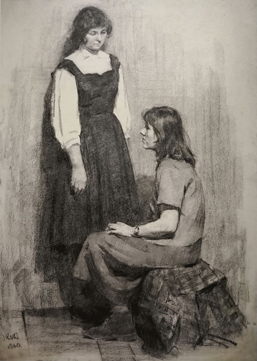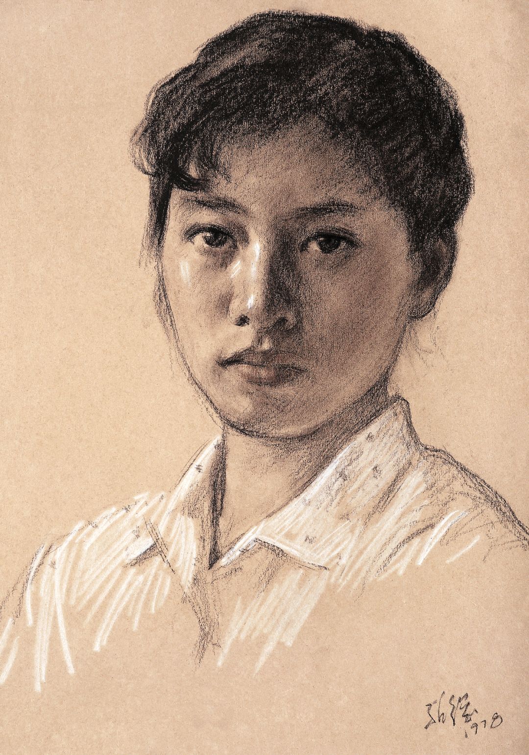 《女学生》褐色垩笔画
