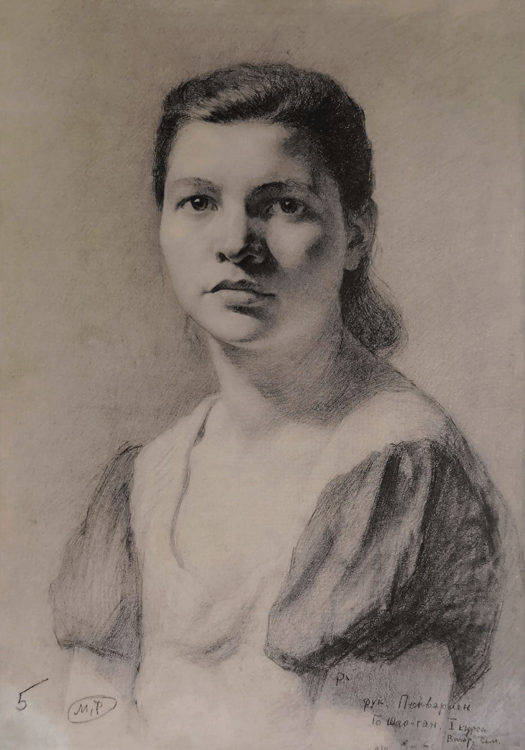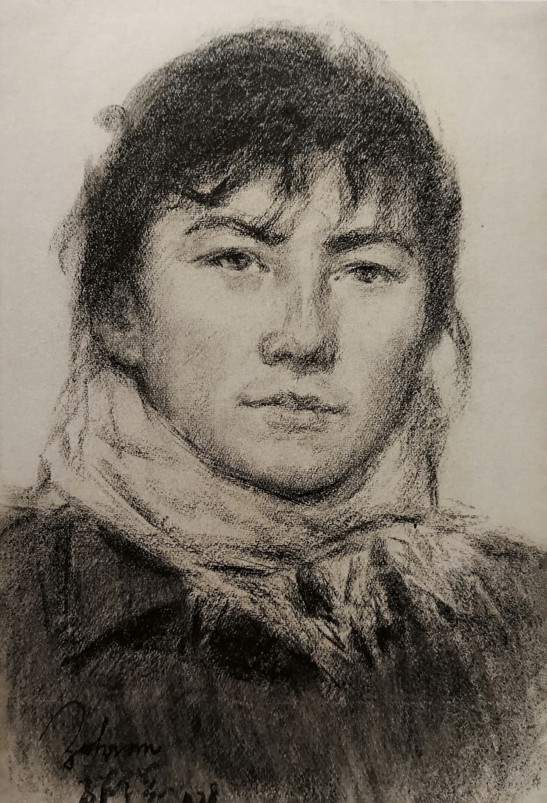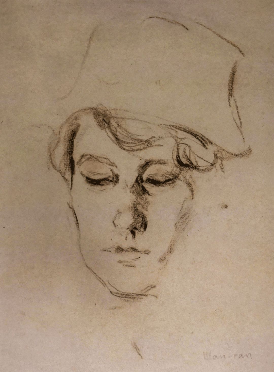 《女学生》褐色垩笔画