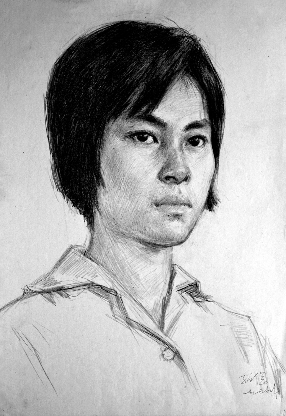 《穿白短袖衣的女胸像》铅笔画