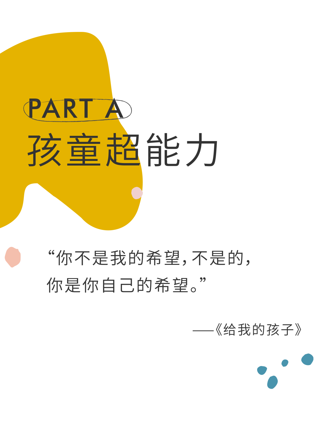 他们以儿童的身份参与到社会生活中,带着儿童的勇敢与坚韧,化身不一样的身份——小艺术家、小设计师、小诗人、小戏剧演员、小商人等,在五彩的世界与我们相遇。