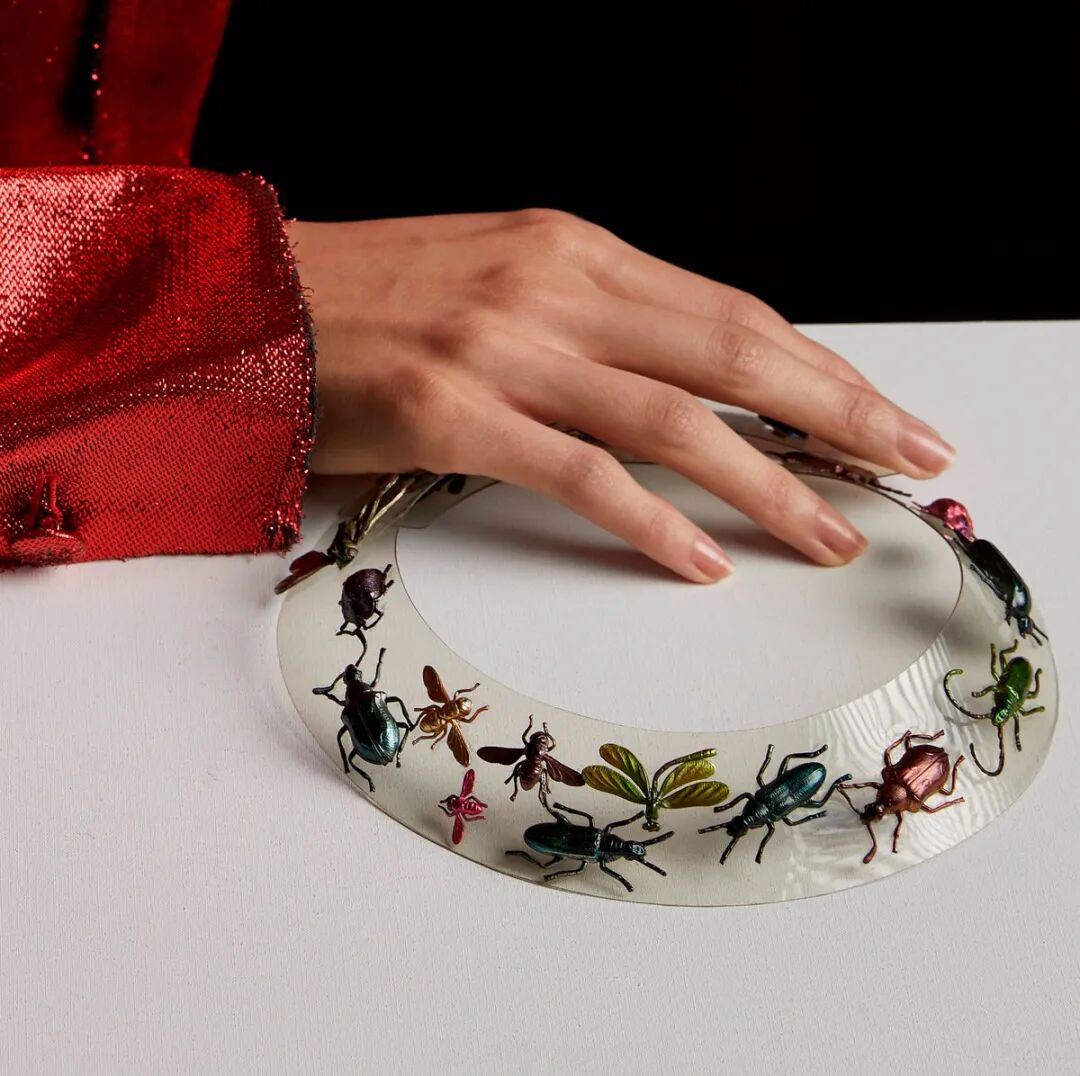 除了时尚史中那条著名的龙虾裙,她还创作出一条昆虫项链,用琥珀制成,如同真正的昆虫在肌肤上缓慢爬行。