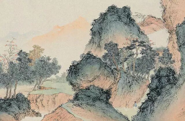 溥心畲运用了斧劈皴法层层展现山的波折顿挫,