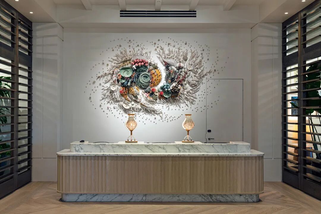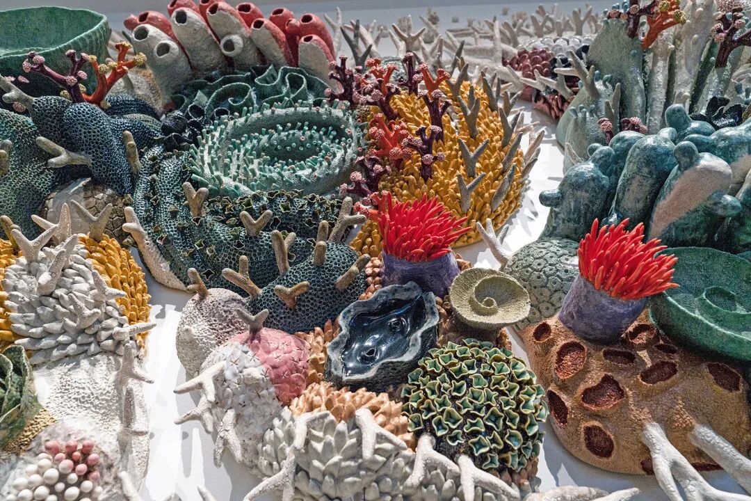 考特尼·马蒂森的每一个雕塑作品都非常复杂,通常由数百个单独的部分构成,然后经过精心测量、雕刻、上色。这位艺术家的珊瑚礁雕塑非常真实自然,闪闪发光,秘诀在于她自己开发的颜色,描绘上色之后再进行烧制,最终呈现出珊瑚礁这种海洋无脊椎动物群落的活力、色调和纹理。