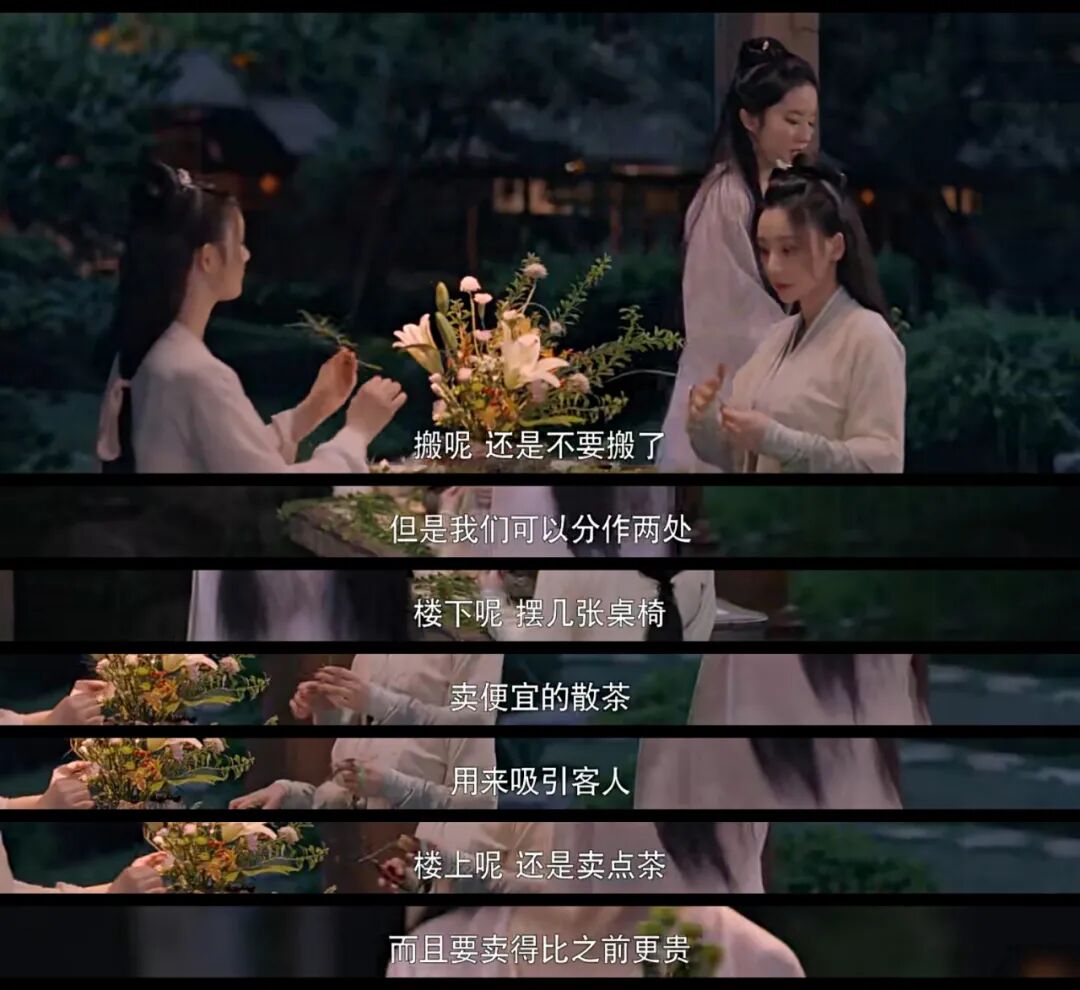 不过言归正传,上面分析的营销中,其实还有几点也值得我们学习,就是赵盼儿三人对于人性的把握以及经营中风险的把握,比如不同人痛点的不同,甚至在介绍贡品茶具时候的用词规避,都充满了思考。