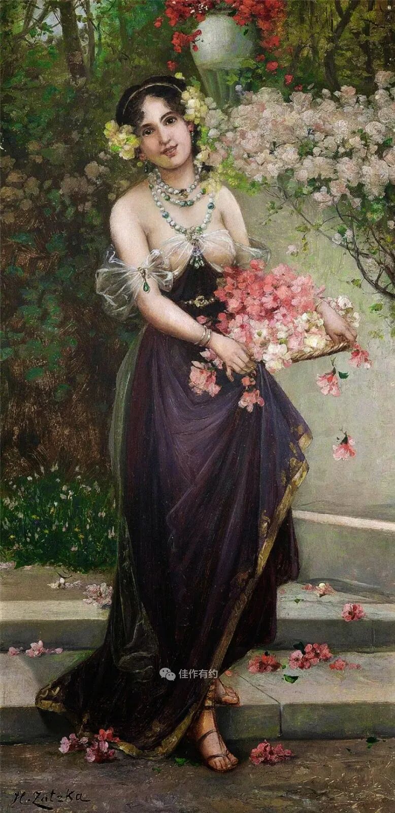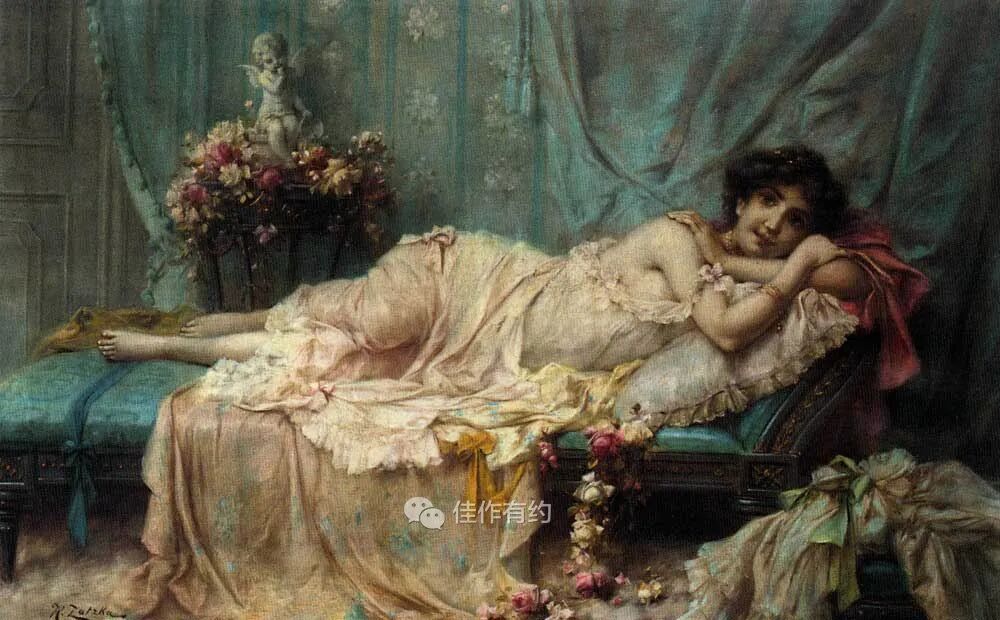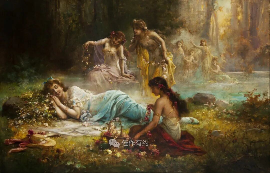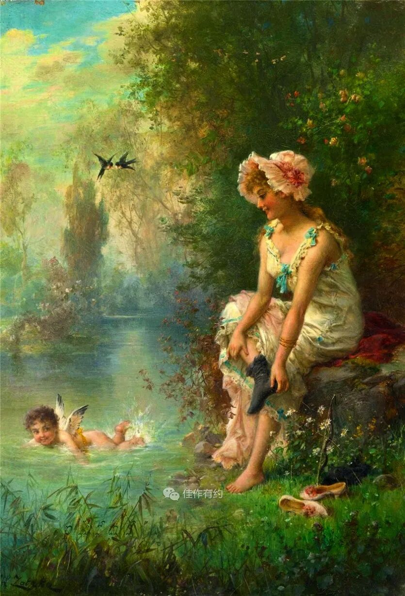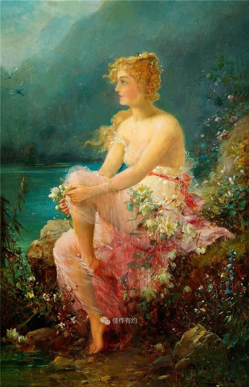 汉斯·扎茨卡 (Hans Zatzka) 是一位奥地利学院派和奇幻画家。他有时被称为 P. Ronsard、Pierre de Ronsard 或 H. Zabateri,并在他的许多作品上签名为 Joseph Bernard、J. Bernard 或 Bernard Zatzka。Zatzka 使用大量化名的目的是为了避免违反合同的处罚,因为合同限制了他可以出售的艺术品数量。这导致一些艺术数据库将扎茨卡化名约瑟夫伯纳德的作品与同名的法国雕塑家混为一谈。Zatzka 的许多作品都是献给奥地利各个教堂的宗教画和祭坛画。然而,他以描绘女性、仙女和其他奇幻场景的画作而闻名。通常,他会从理查德瓦格纳的作品和格林兄弟的童话中汲取灵感。