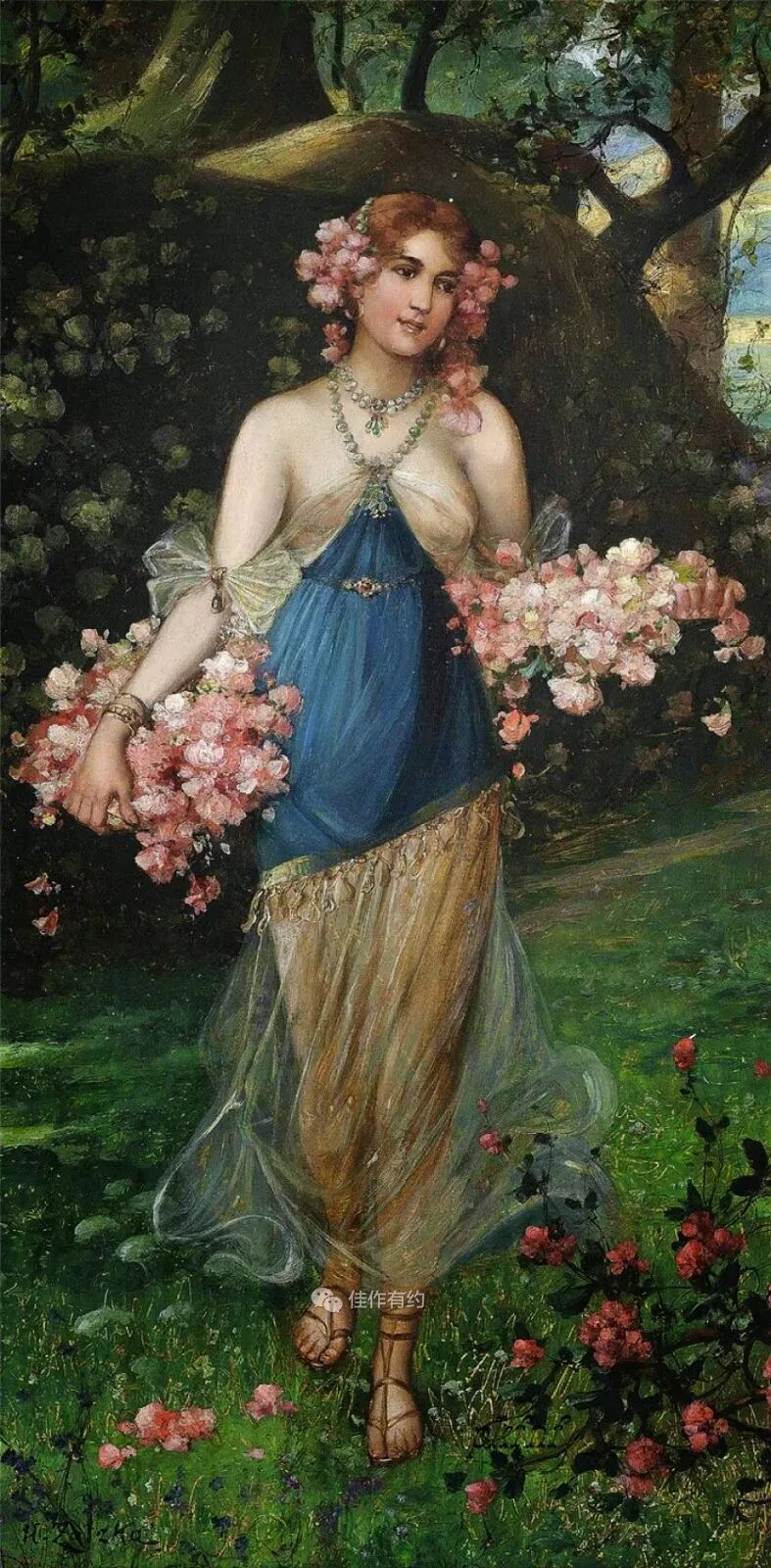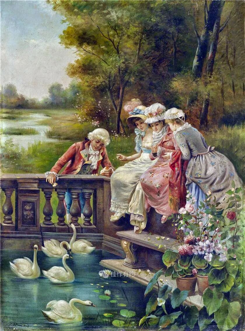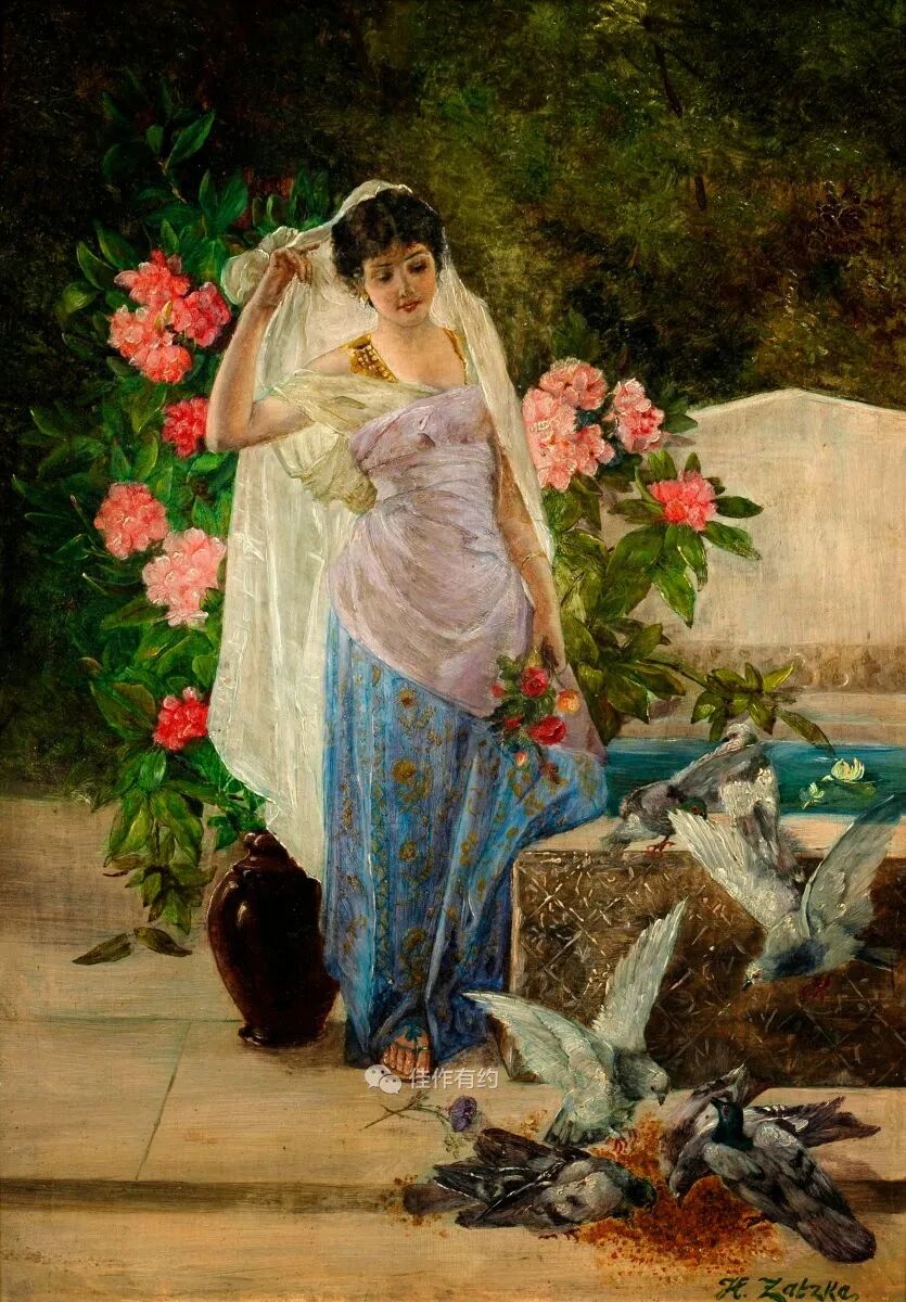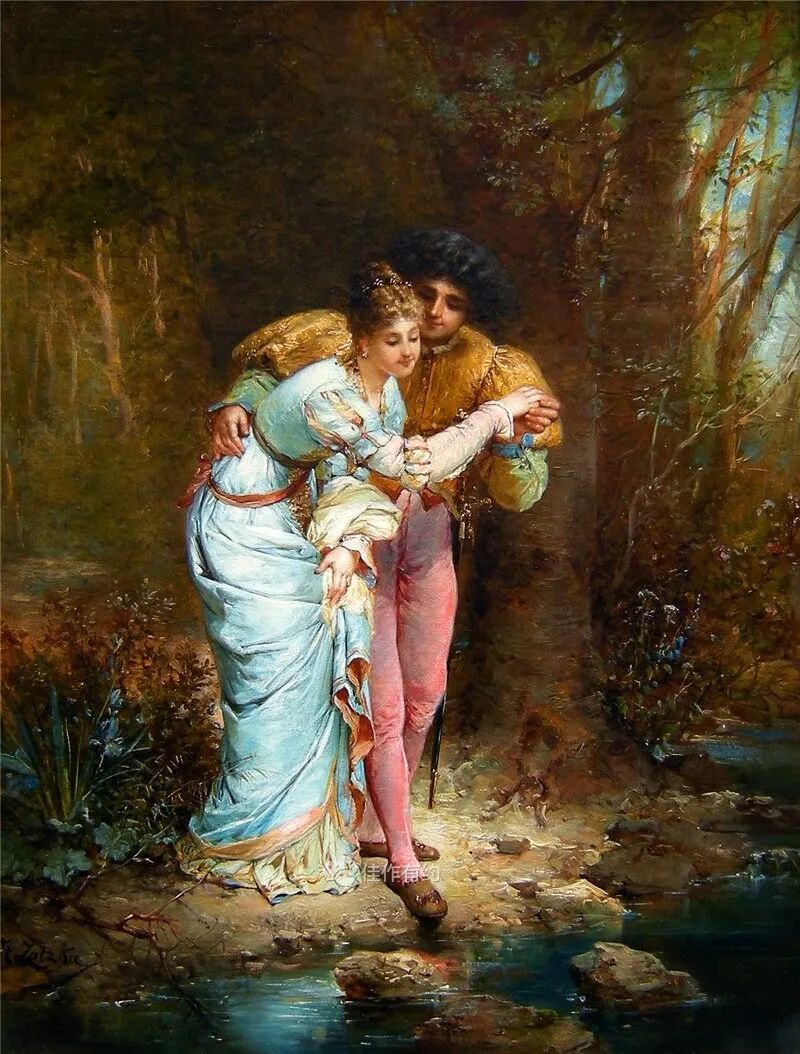 汉斯·扎茨卡 (Hans Zatzka) 是一位奥地利学院派和奇幻画家。他有时被称为 P. Ronsard、Pierre de Ronsard 或 H. Zabateri,并在他的许多作品上签名为 Joseph Bernard、J. Bernard 或 Bernard Zatzka。Zatzka 使用大量化名的目的是为了避免违反合同的处罚,因为合同限制了他可以出售的艺术品数量。这导致一些艺术数据库将扎茨卡化名约瑟夫伯纳德的作品与同名的法国雕塑家混为一谈。Zatzka 的许多作品都是献给奥地利各个教堂的宗教画和祭坛画。然而,他以描绘女性、仙女和其他奇幻场景的画作而闻名。通常,他会从理查德瓦格纳的作品和格林兄弟的童话中汲取灵感。