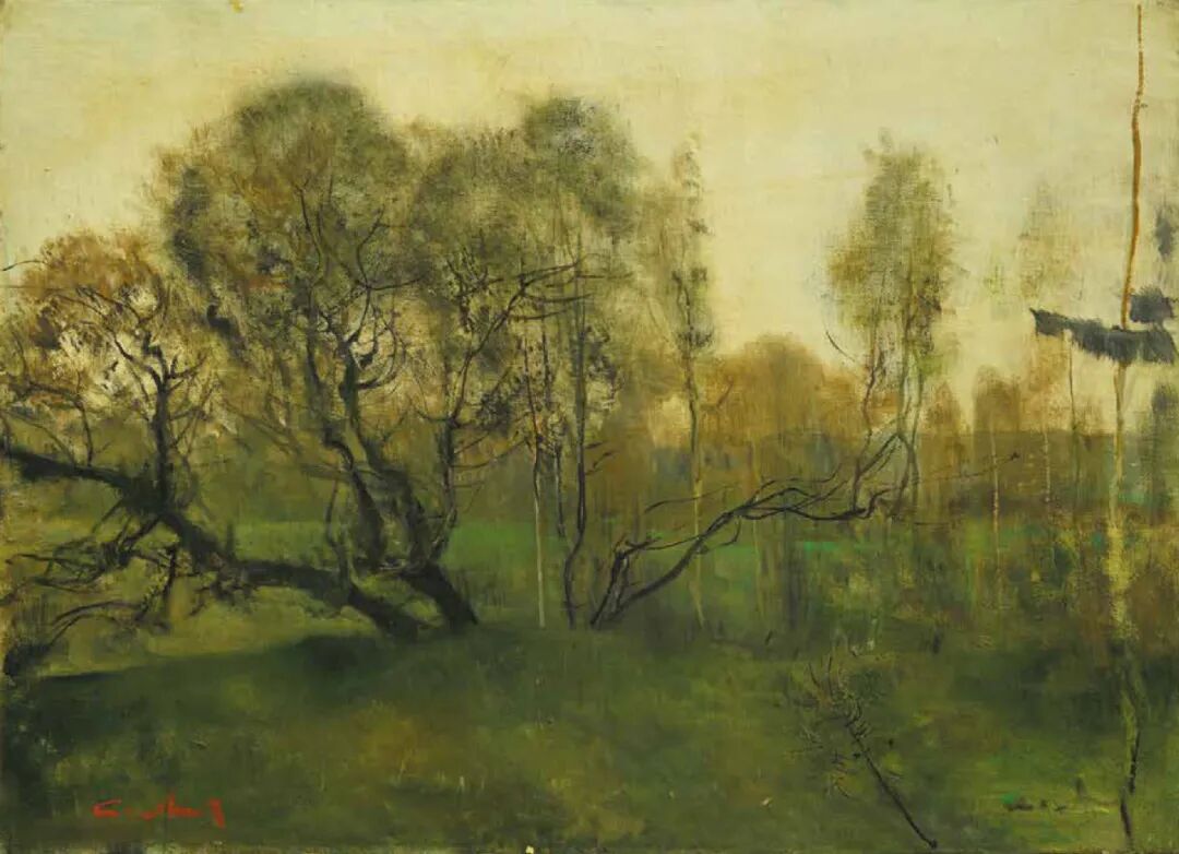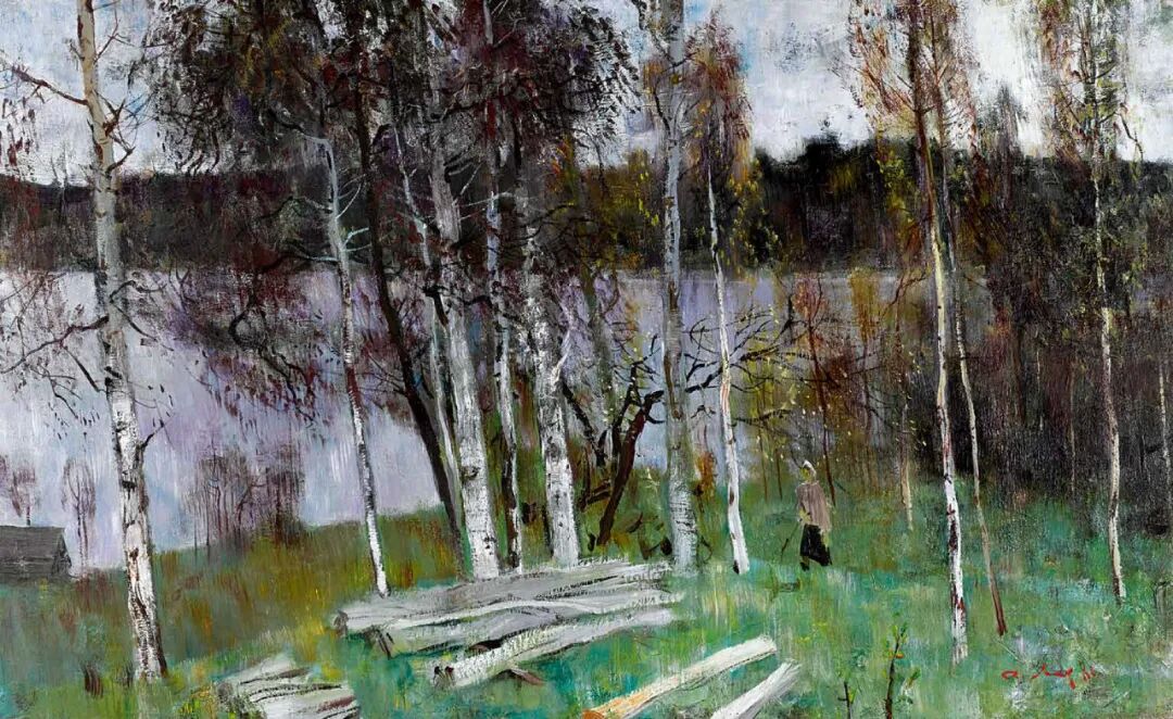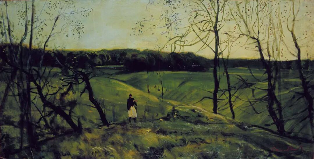 早春之绿 布面油画 80×130cm 1980年 上海梅尔尼科夫美术馆藏
