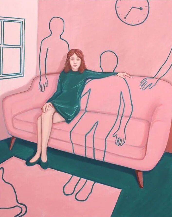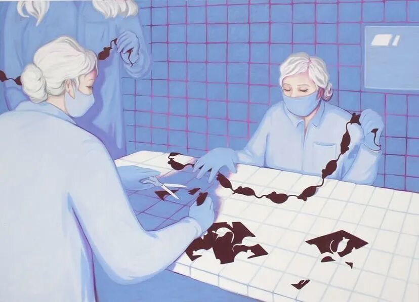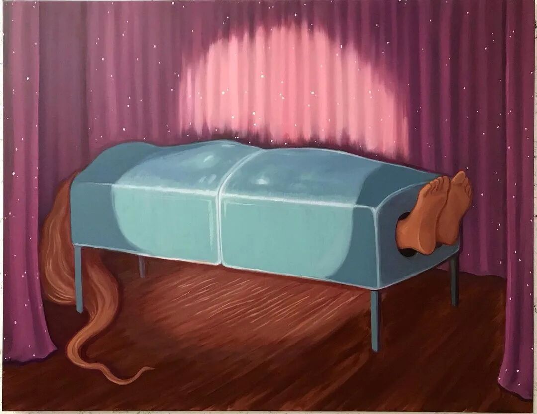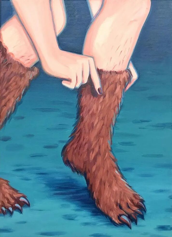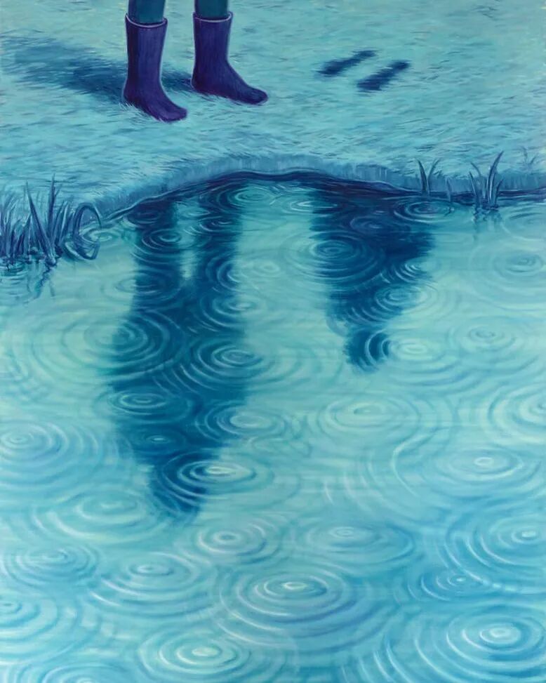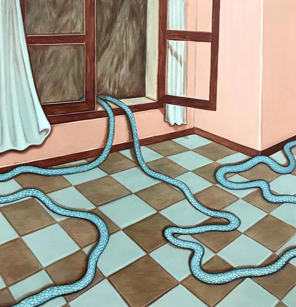 Lise Stoufflet将柔和的色彩与丰富的深色色调形成对比,营造出神秘和诡异的氛围。每个作品是一个故事的暗示,但并未真正揭示正在发生的事情。